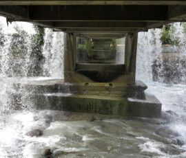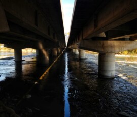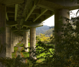 112 - Sasdelli Luigi - Tit-Sotto il viadotto la capra campa .....; Il "ponte delle capre", sulla Dora, a diretto contatto con il viadotto autostradale al termine del percorso ciclo-pedonale "Lungodora" nel Comune di St. Vincent quasi al confine con Montjovet.