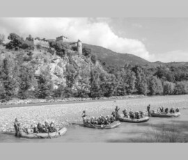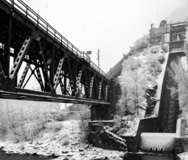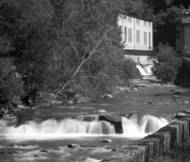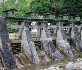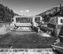 113 - Sasdelli Luigi - Tit- Chiudere la corrente per avere ... l'elettricità. Chiusa mobile su torrente Buthier in regione Saumont (Aosta) per creare il bacino di alimentazione della centrale elettrica CVA di Quart.