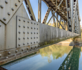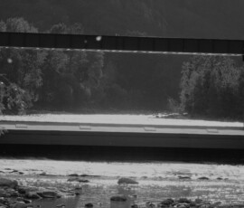 133 - Taldo Paolo - Geometrie sull'acqua..Le forme geometriche del ponte ferroviario si stagliano e si riflettono sulla Dora ,nei pressi di Nus.