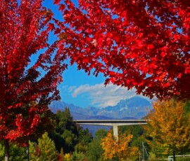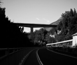 151 - Domaine Martina - Incroci tra strade. Ponte e strada di Saumont, sulle creste l'ultima spolverata di neve a segnare l'arrivo della bella stagione.