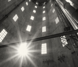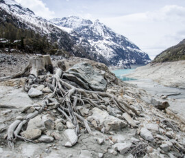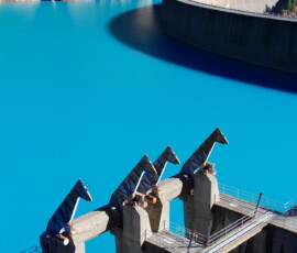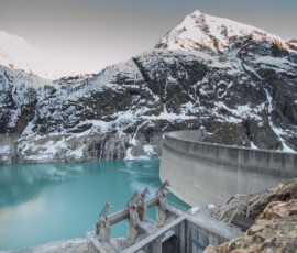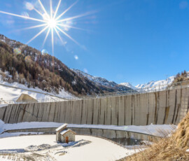 231 - Atzei Lorena - TITOLO: Eclissi di diga. DIDASCALIA: Diga di Place Moulin, Bionaz - Le ombre della montagna lasciano finalmente che il sole esalti l’imponente opera.