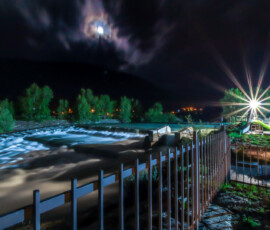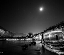 101 - NORBIATO ALBERTO - 10 SECONDI DI INGEGNERIA A SAUMONT... LA LUNA PIENA UNA LAMPADINA, IL VIADOTTO COLLEGA LE DUE SPONDE,LA CENTRALE IDROELETTRICA FUNZIONA A PIENO REGIME.