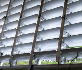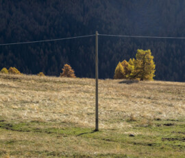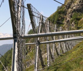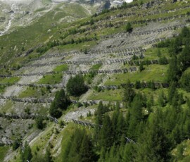 207 - Pizzi Silvia - Titolo: "Filari artificiali #2" Luogo dello scatto: Courmayeur Didascalia: I paravalanghe sembrano filari in estate, "coperti" solo dalla luce del sole, lungo il pendio.