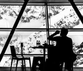 195 - Lepore Rosario - Il bar della stazione Pavillon, sullo skyway di Courmayeur, offre uno spettacolo mozzafiato sul massiccio del Monte Bianco.