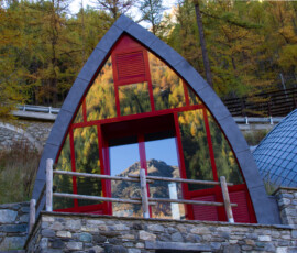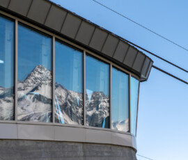196 - Lepore Rosario - Stazione di arrivo/partenza della funivia al Pavillon. Sullo Skyway di Courmayeur offre immagini mozzafiato sulla montagna circostante. I grandi vetri permettono di ridurre l'impatto della struttura offrendo la possibilità, anche di riflesso, di ammirare