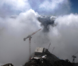 232 - Balma Luca - TITOLO: Terra in vista! - DIDASCALIA: Punta Helbronner: vista sui lavori di ammodernamento del rifugio Torino - come dalla prua di una nave…verso l’orizzonte.
