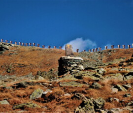 206 - Pizzi Silvia - Titolo: "Filari artificiali #1" Luogo dello scatto: Courmayeur Didascalia: I paravalanghe sembrano filari in estate, "coperti" solo dalla luce del sole, lungo il pendio.