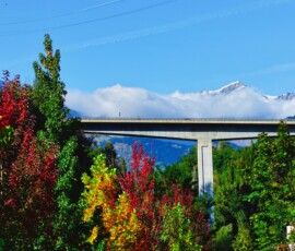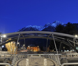 51 - Junod Rosella - La becca di Nona, il Monte Emilius e la Becca Seneva osservano compiacenti l'innovazione e l'Ingegno Umano. Il ponte sul Buthier ad Aosta