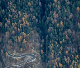 11 - Massa Micon Enzo - STRADA SU PENDIO - la strada si adatta al pendio con curve e tornanti resi quasi inspiegabili dalla prospettiva della fotografia aerea dalla mongolfiera