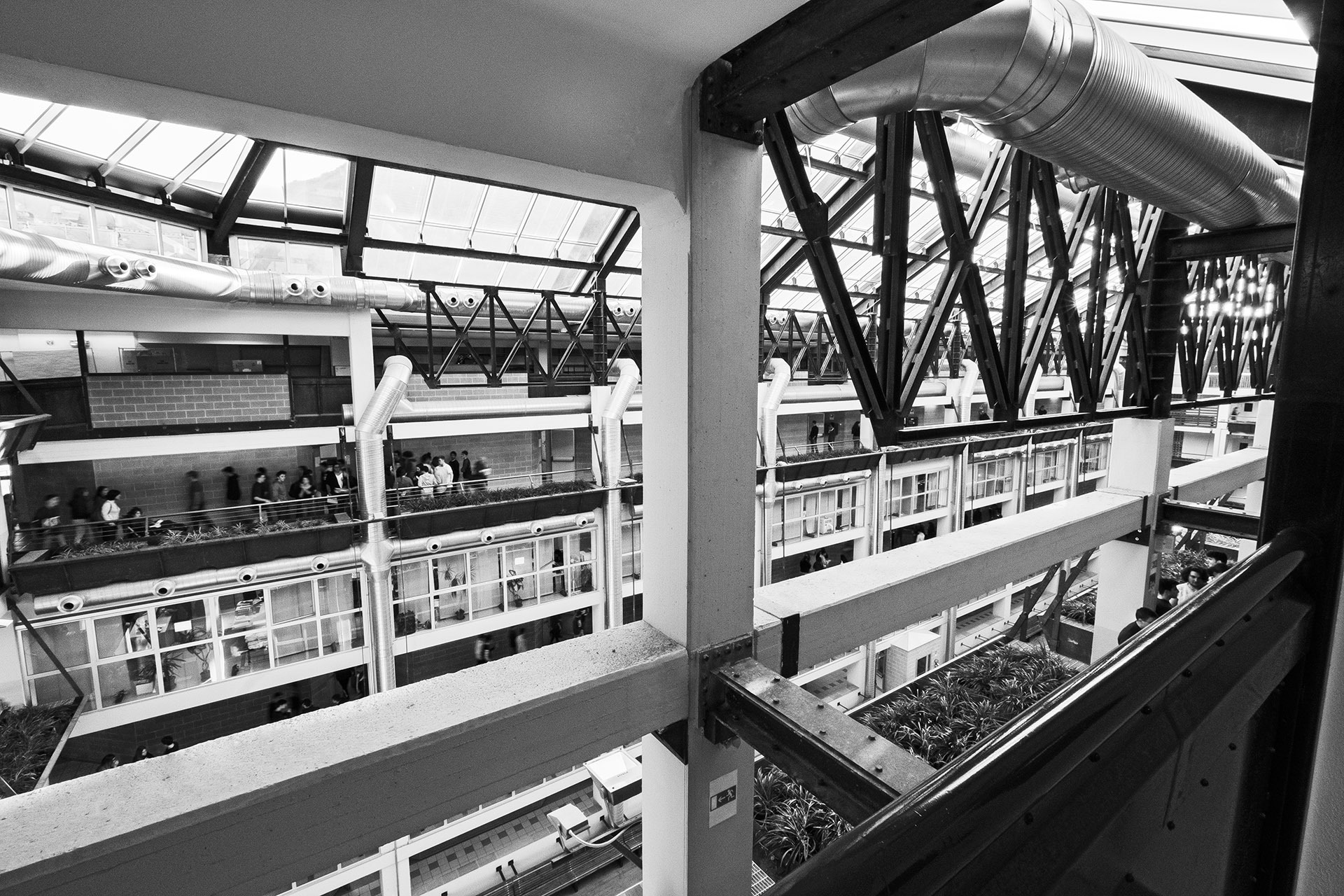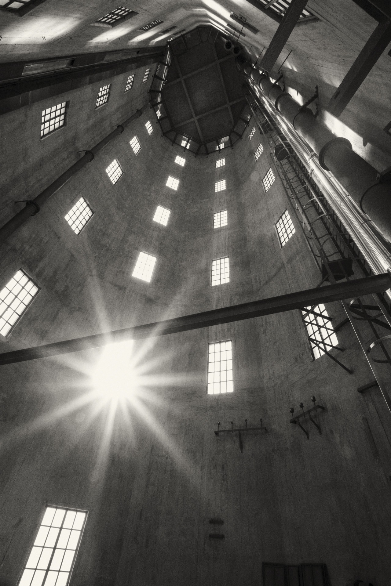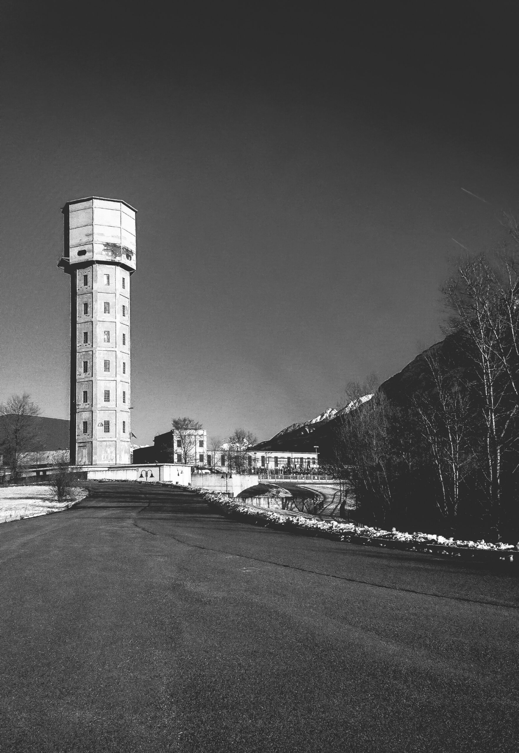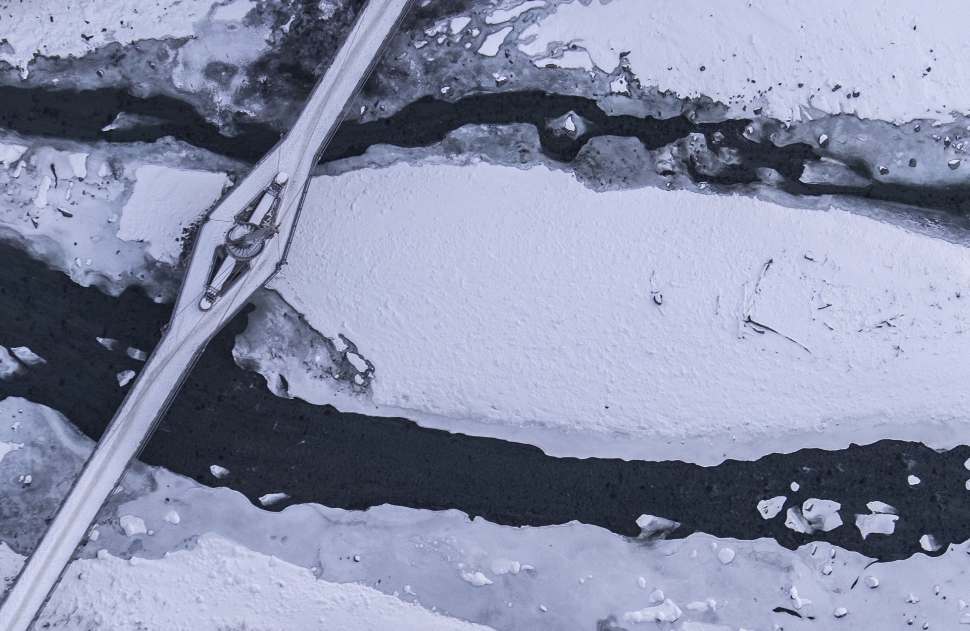 14 - Carta Andrea - 45.765974 N, 6.980951 E. La neve che tutto copre non sembra avere il sopravvento sulla struttura sospesa. Al contrario le linee di forza di tiranti e travi vengono enfatizzate dalla neve e dal contrasto bianco/nero della foto