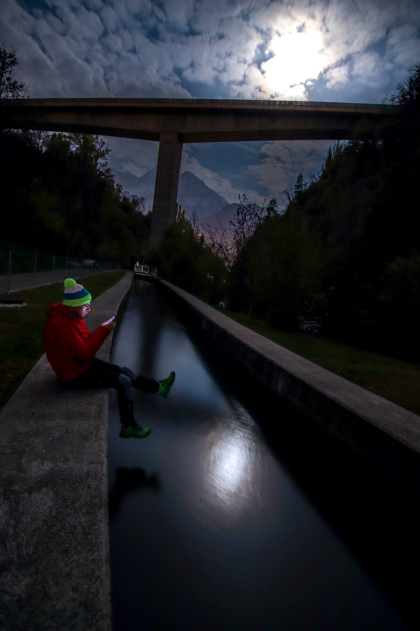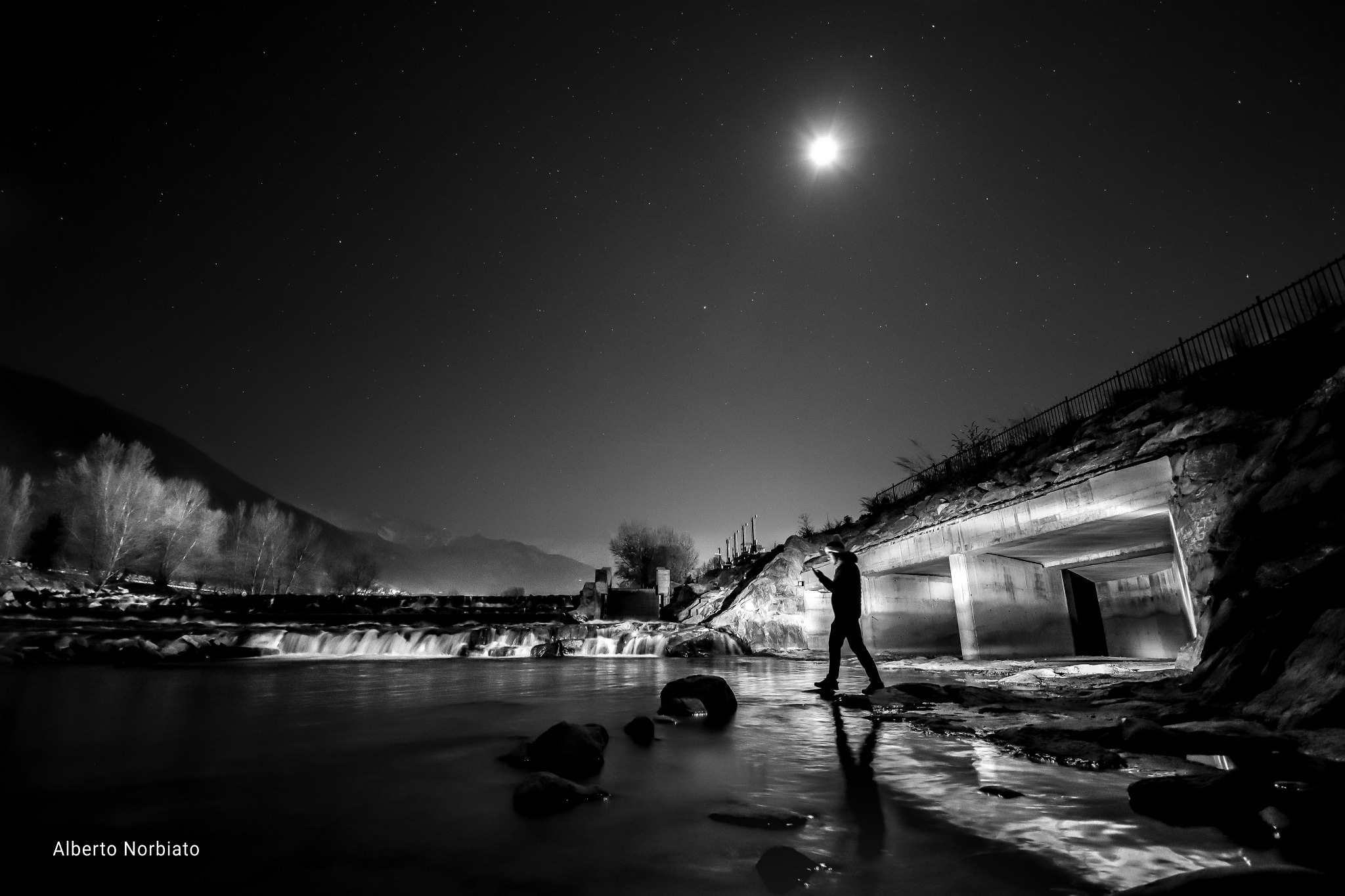 101 - NORBIATO ALBERTO - 10 SECONDI DI INGEGNERIA A SAUMONT... LA LUNA PIENA UNA LAMPADINA, IL VIADOTTO COLLEGA LE DUE SPONDE,LA CENTRALE IDROELETTRICA FUNZIONA A PIENO REGIME.