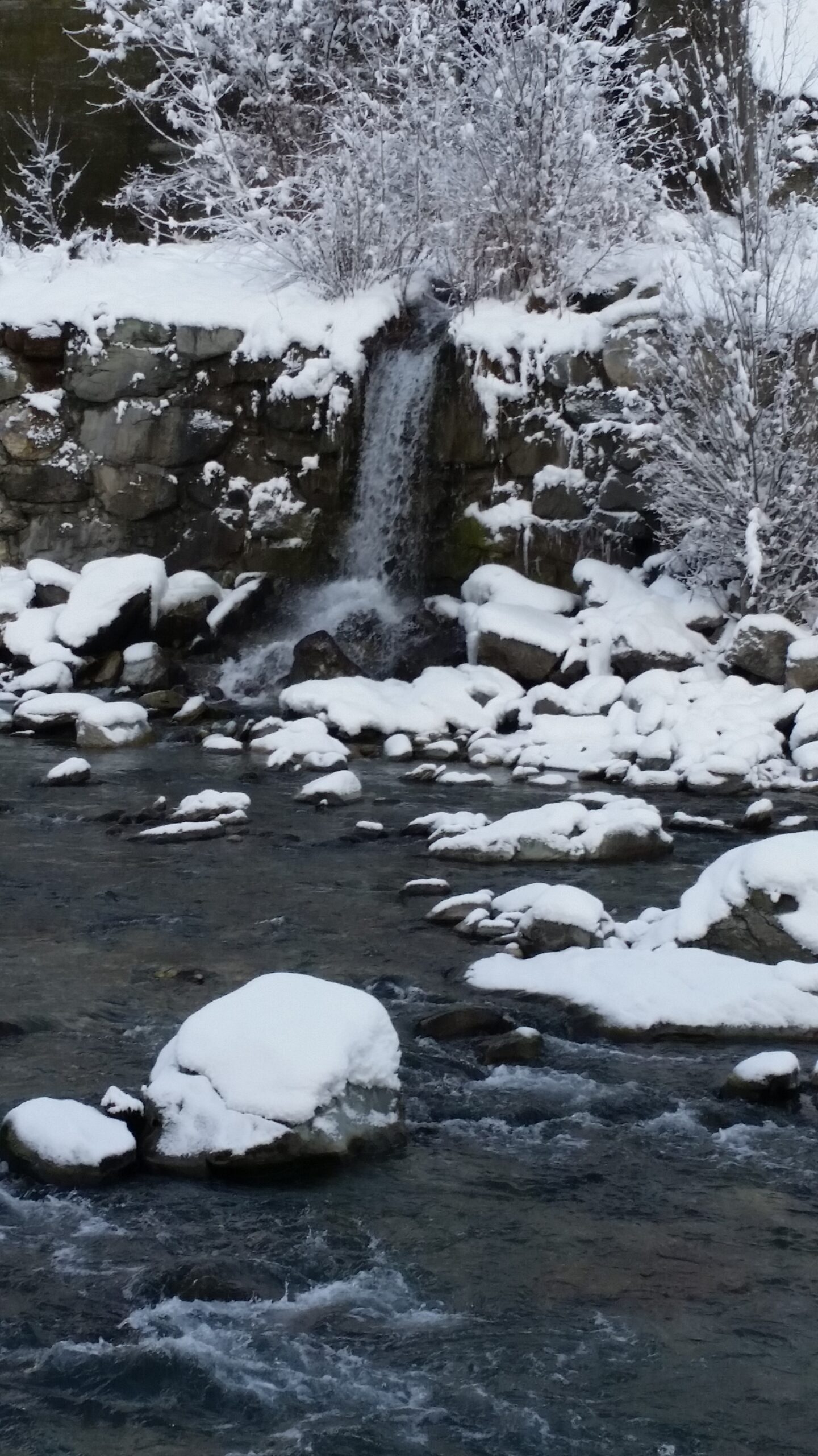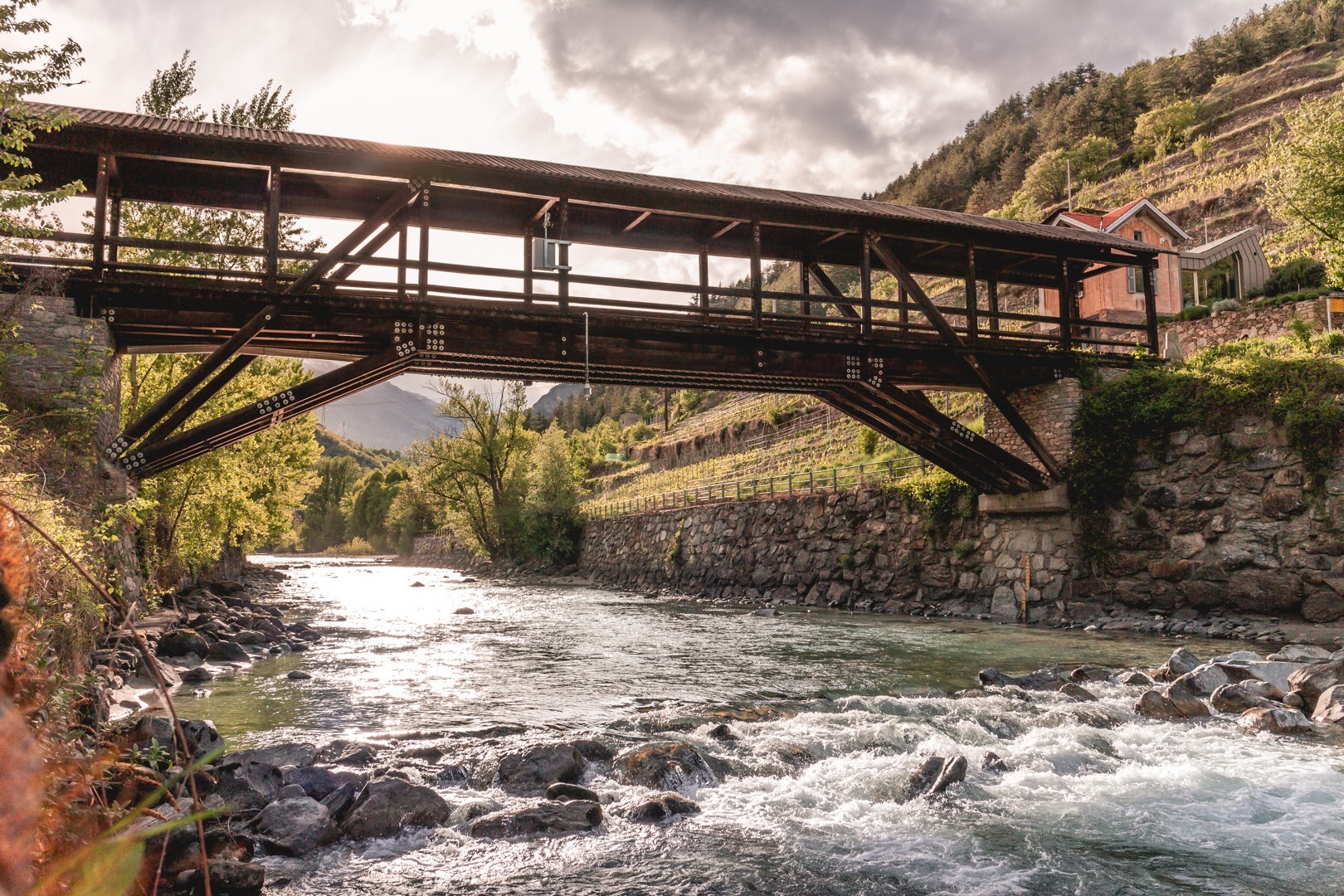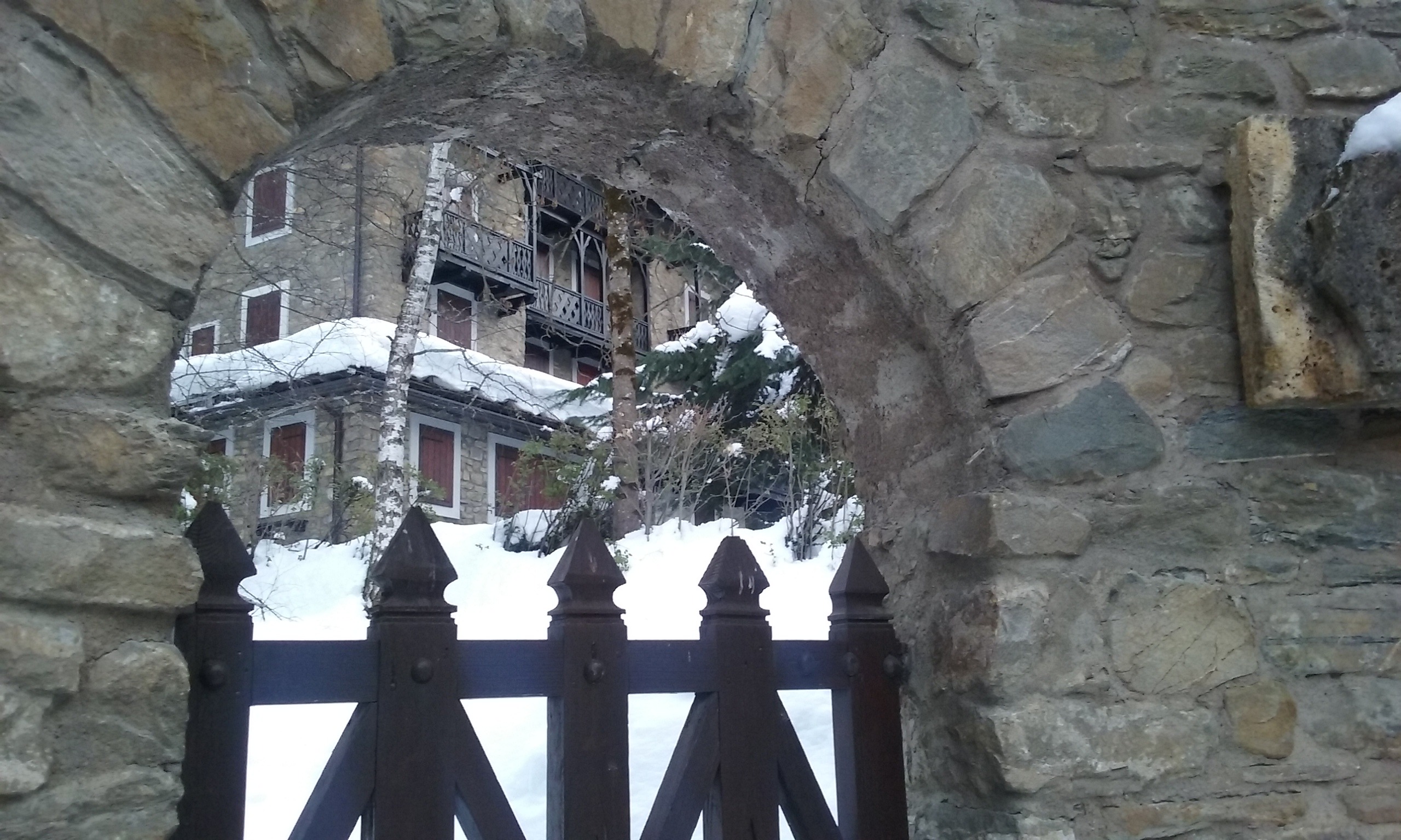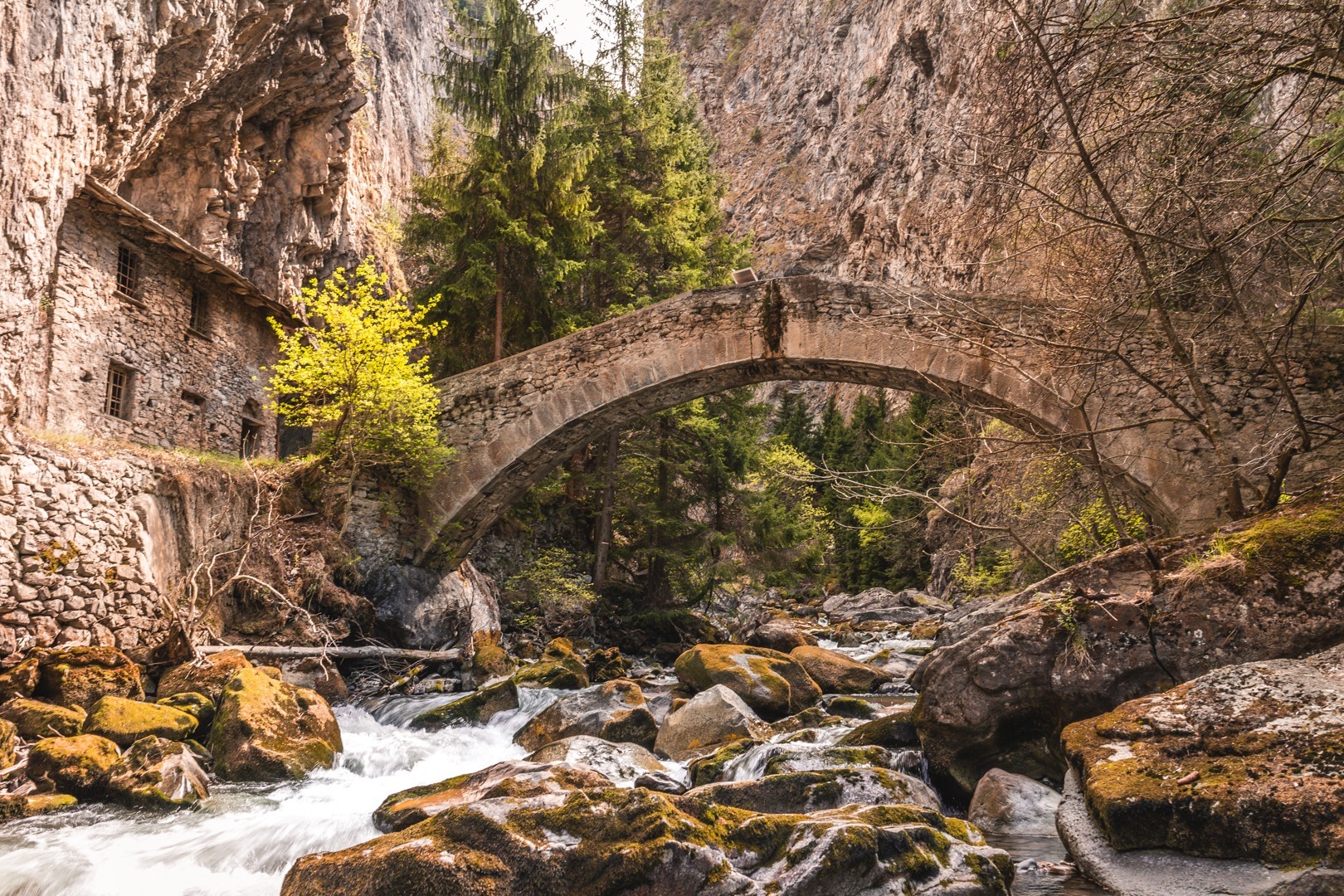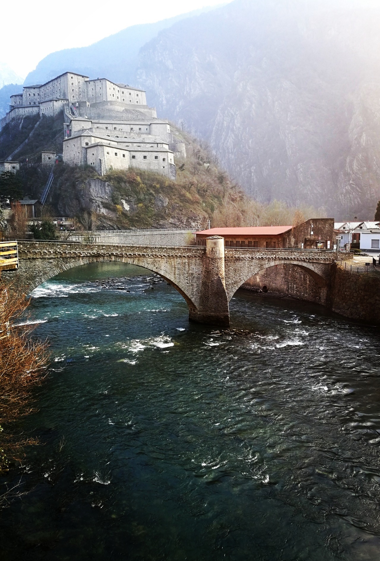 15 - Carta Andrea - 45.763204 N, 6.987293 E. L’imponenza del ponte e la costruzione in pietra appoggiata alla roccia, raffigurano un quadro dipinto in un’altra epoca. L’effetto viene evidenziato dal torrente, dalle tenui tinte di verde, tortora e dai numerosi fiocchi di neve