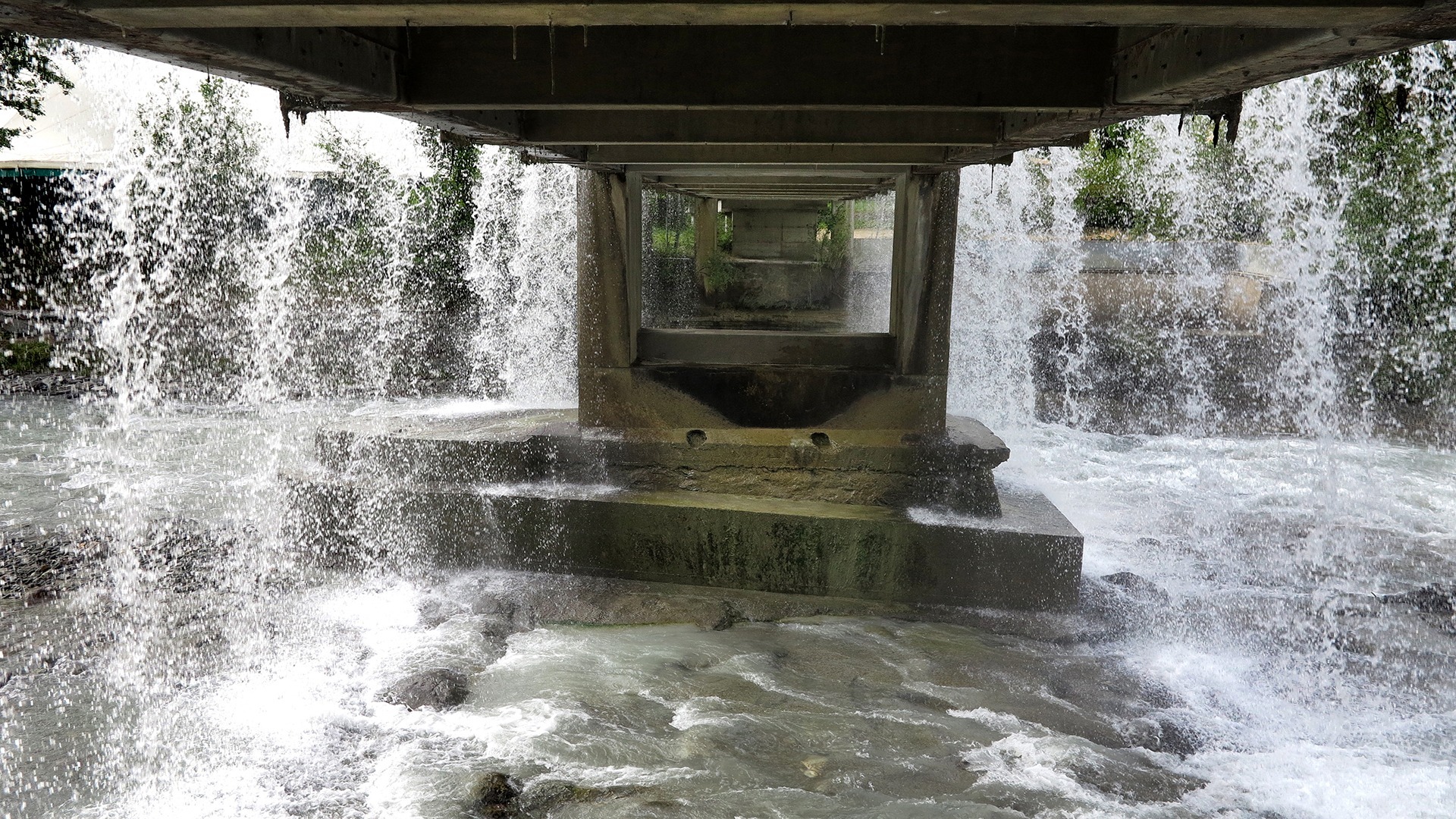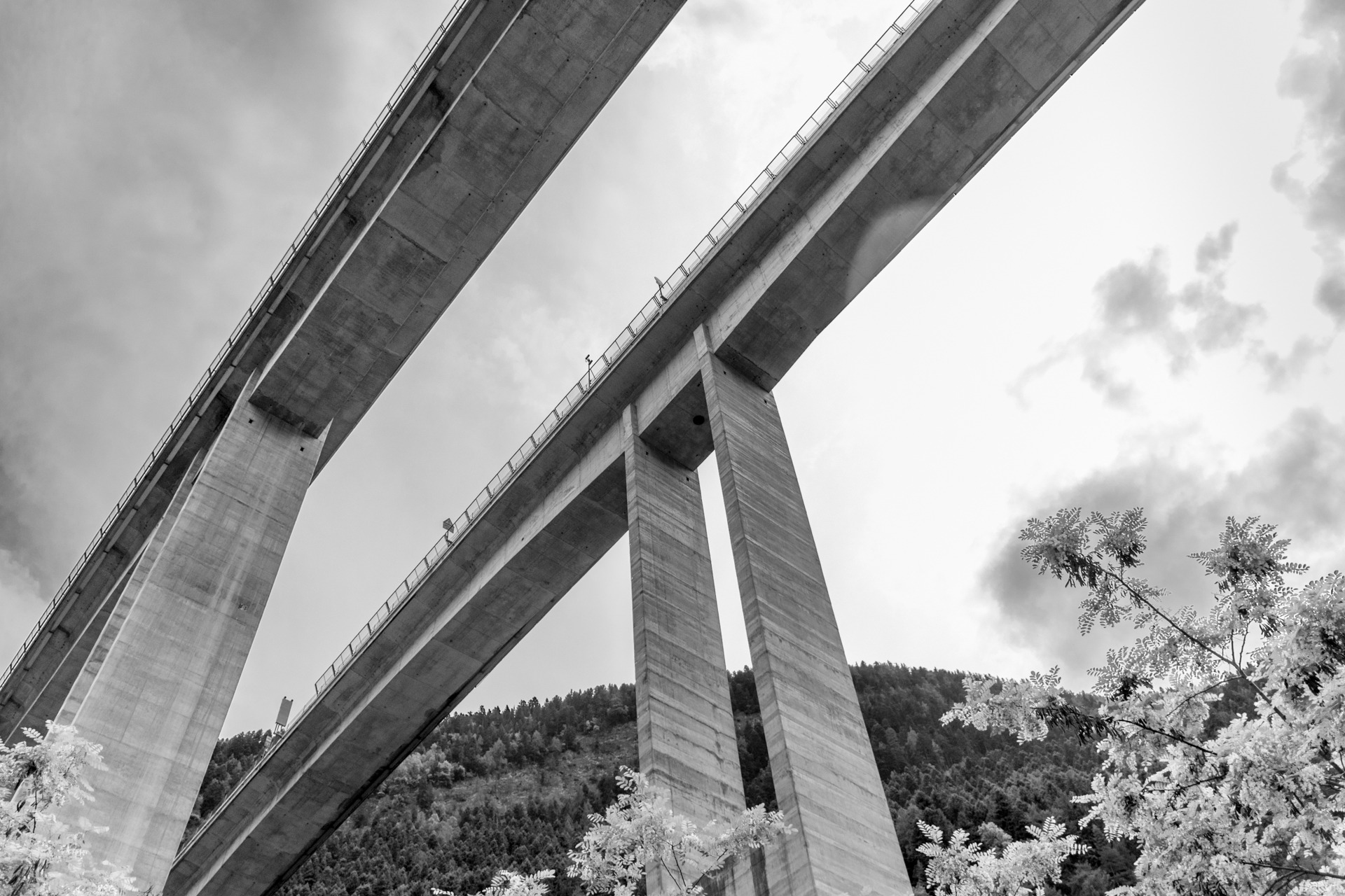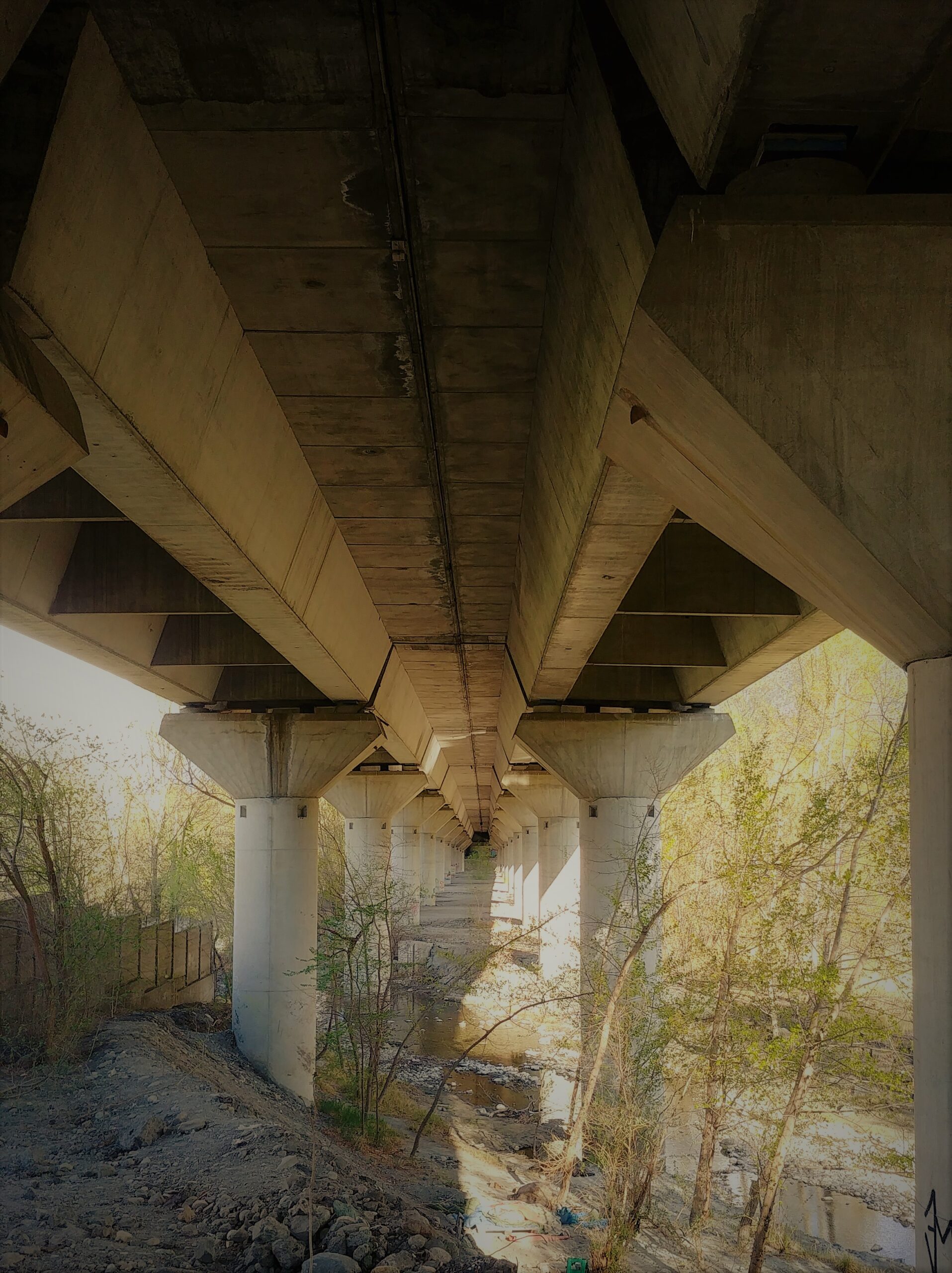 112 - Sasdelli Luigi - Tit-Sotto il viadotto la capra campa .....; Il "ponte delle capre", sulla Dora, a diretto contatto con il viadotto autostradale al termine del percorso ciclo-pedonale "Lungodora" nel Comune di St. Vincent quasi al confine con Montjovet.