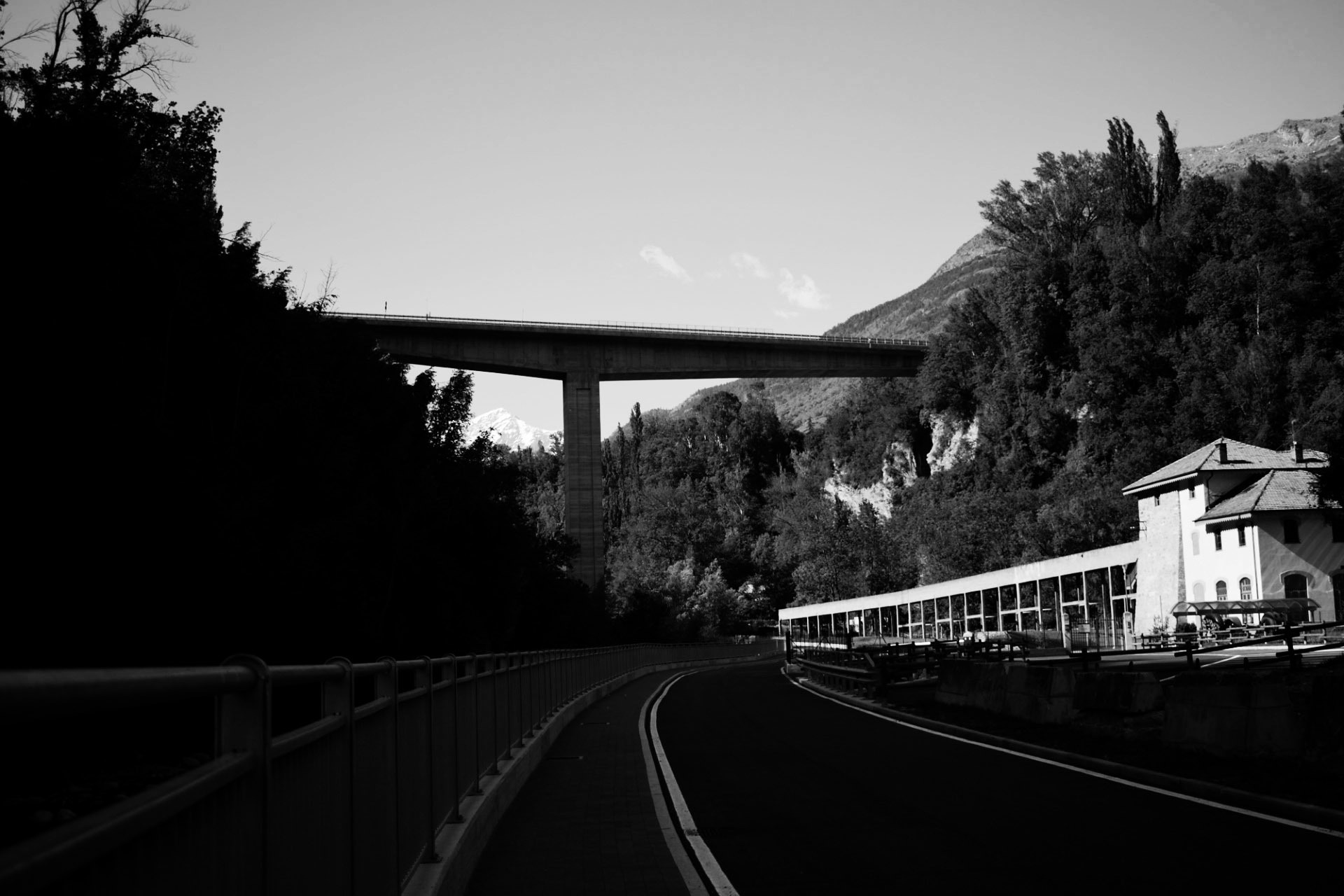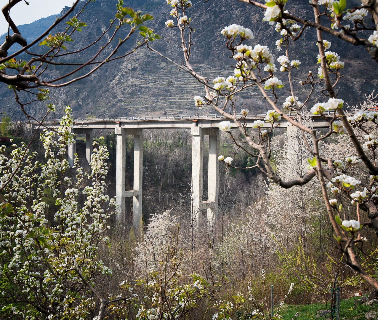 151 - Domaine Martina - Incroci tra strade. Ponte e strada di Saumont, sulle creste l'ultima spolverata di neve a segnare l'arrivo della bella stagione.