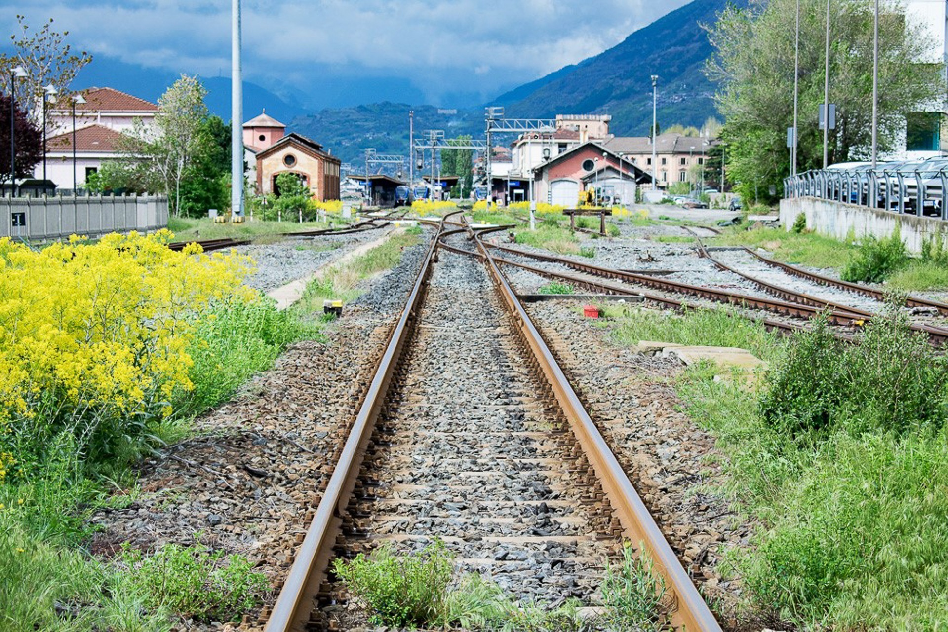 119 - Domaine Martina - Scattata dal passaggio a livello di Aosta. La natura, va ad occupare gli spazi liberi tra i binari, dando un aspetto pittoresco alla scena.