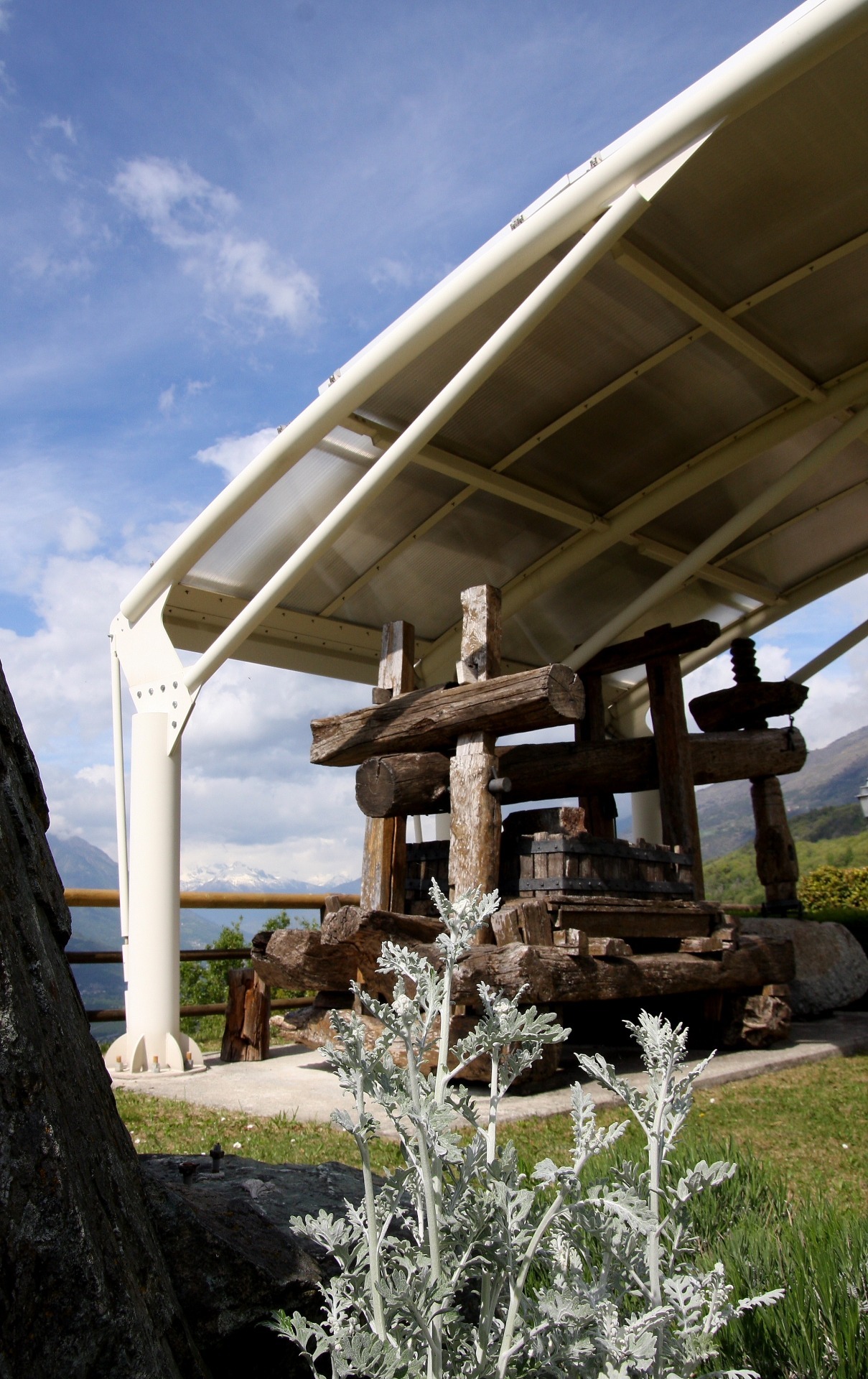 125 - Carta Andrea - Passato e presente - Saint Denis - Ho trovato singolare l'installazione presente in questo punto panoramico. Una pensilina in acciaio che protegge un antico manufatto in legno.