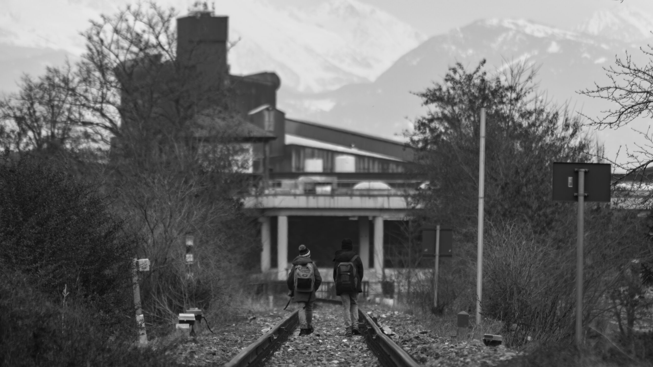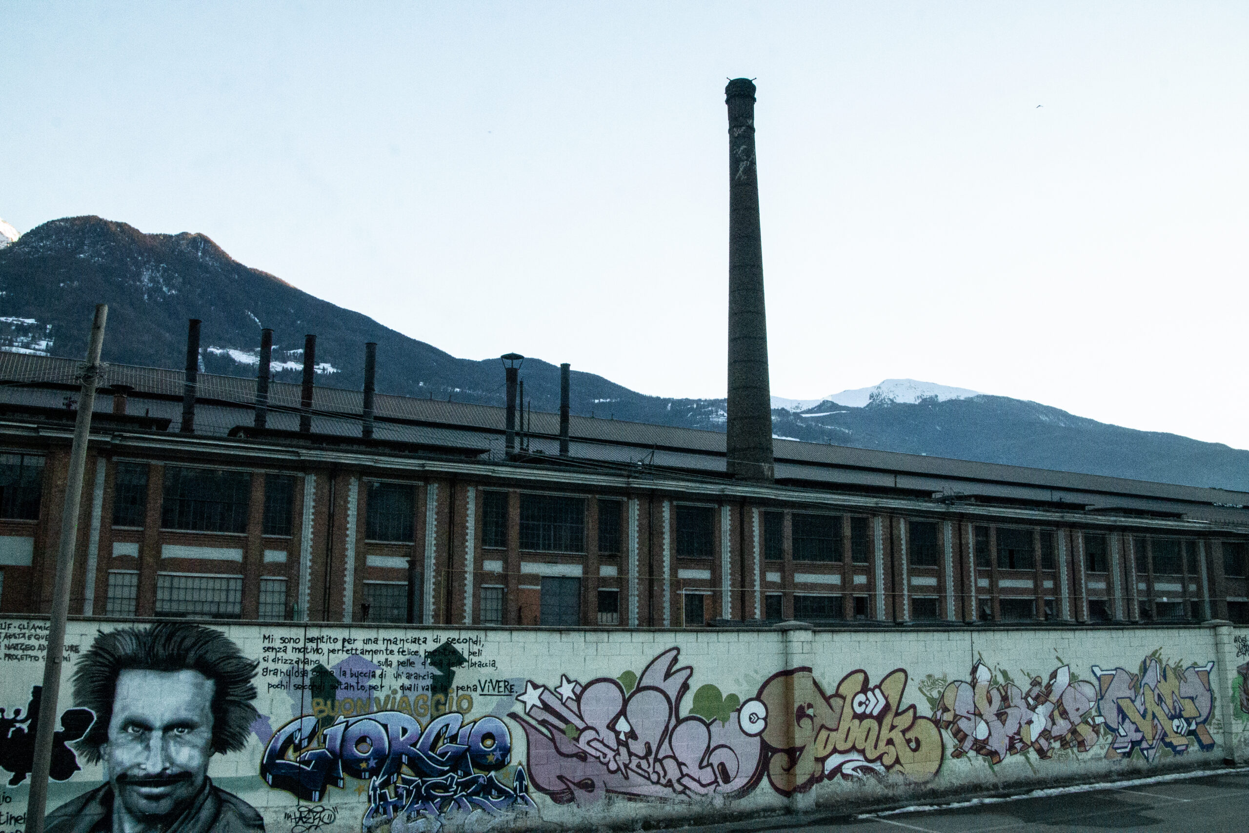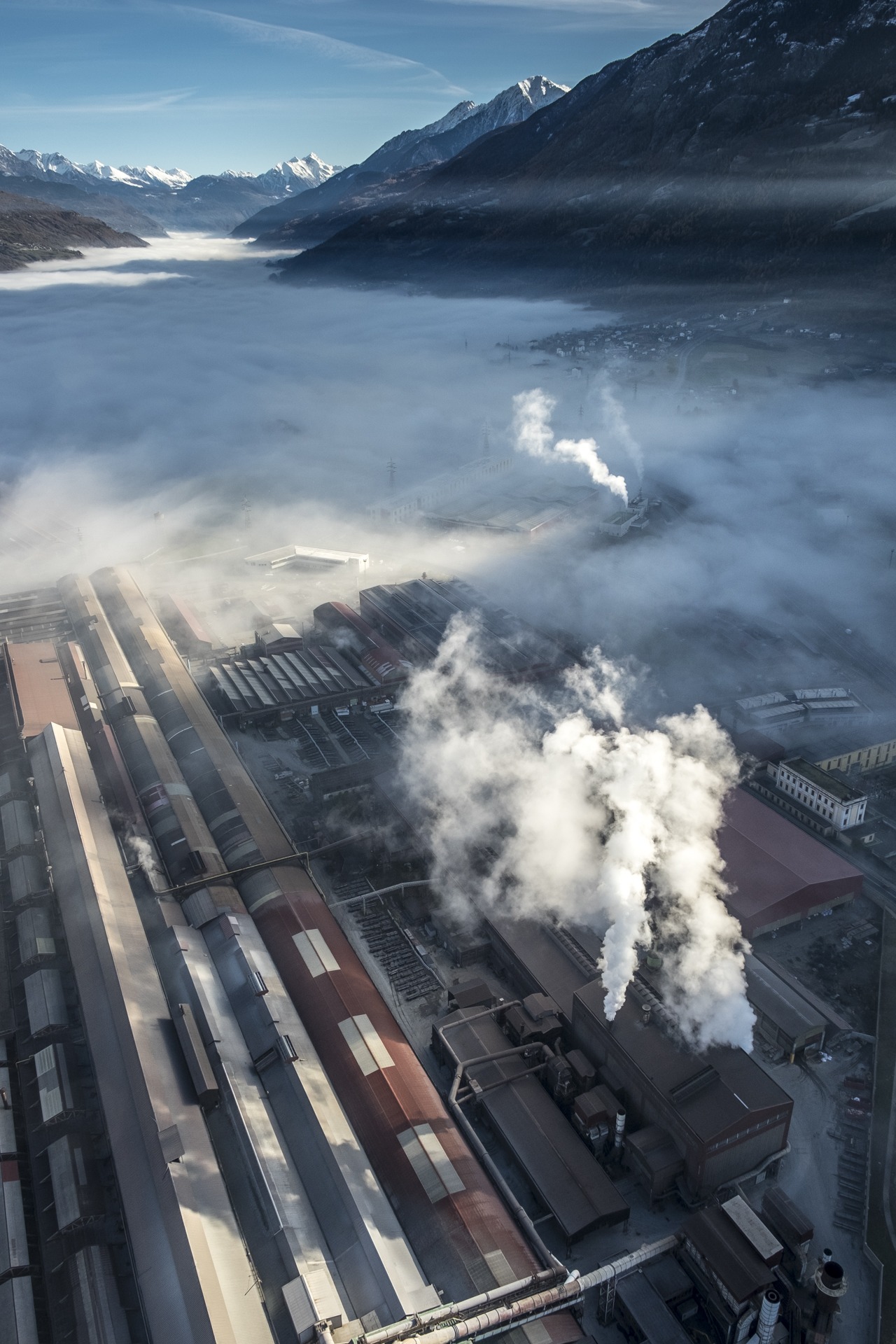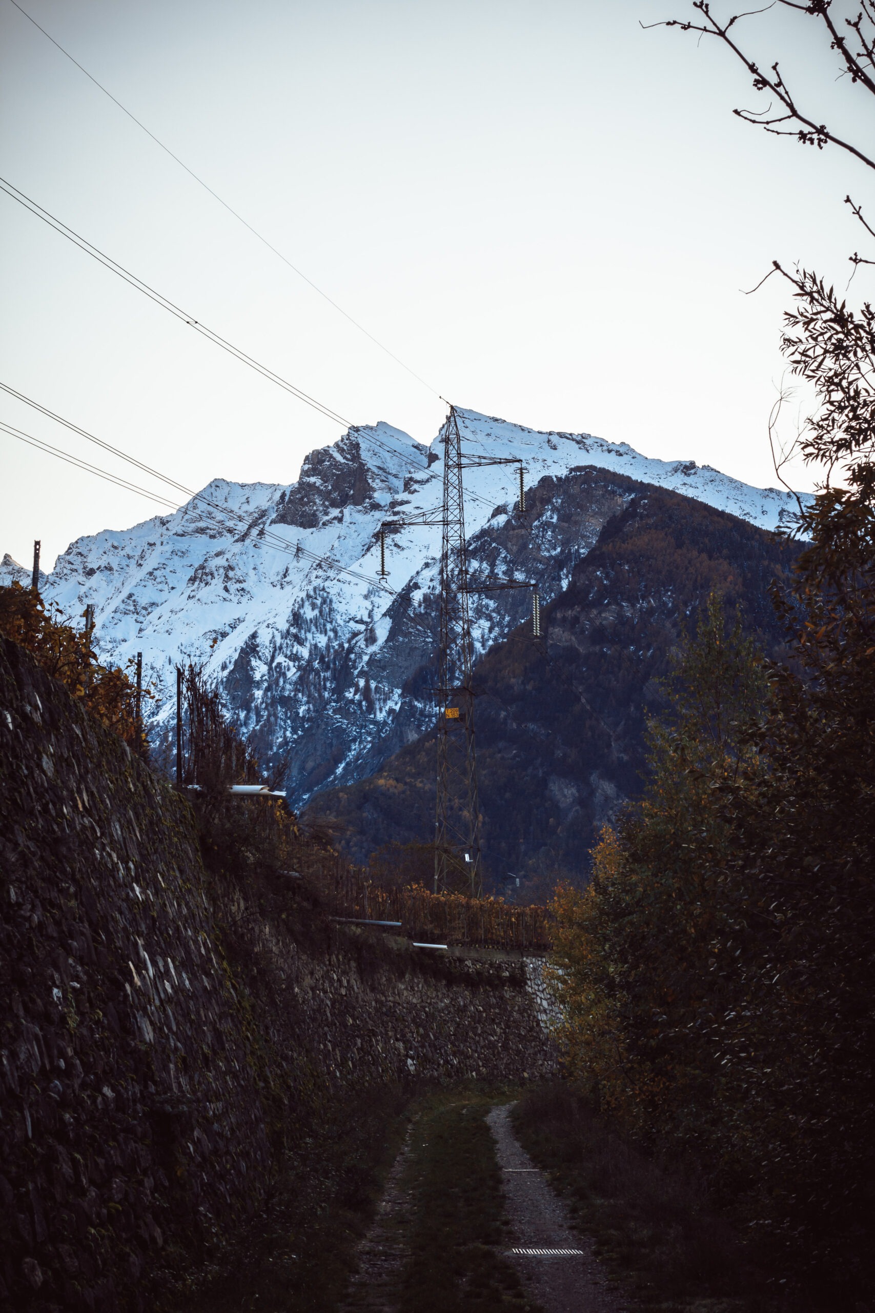 123 - Carta Andrea - Fredda primavera - Saint Denis - Le cime ancora innevate e il cielo parzialmente coperto ritraggono una primavera tardiva, fredda quanto il particolare di una struttura in acciaio.