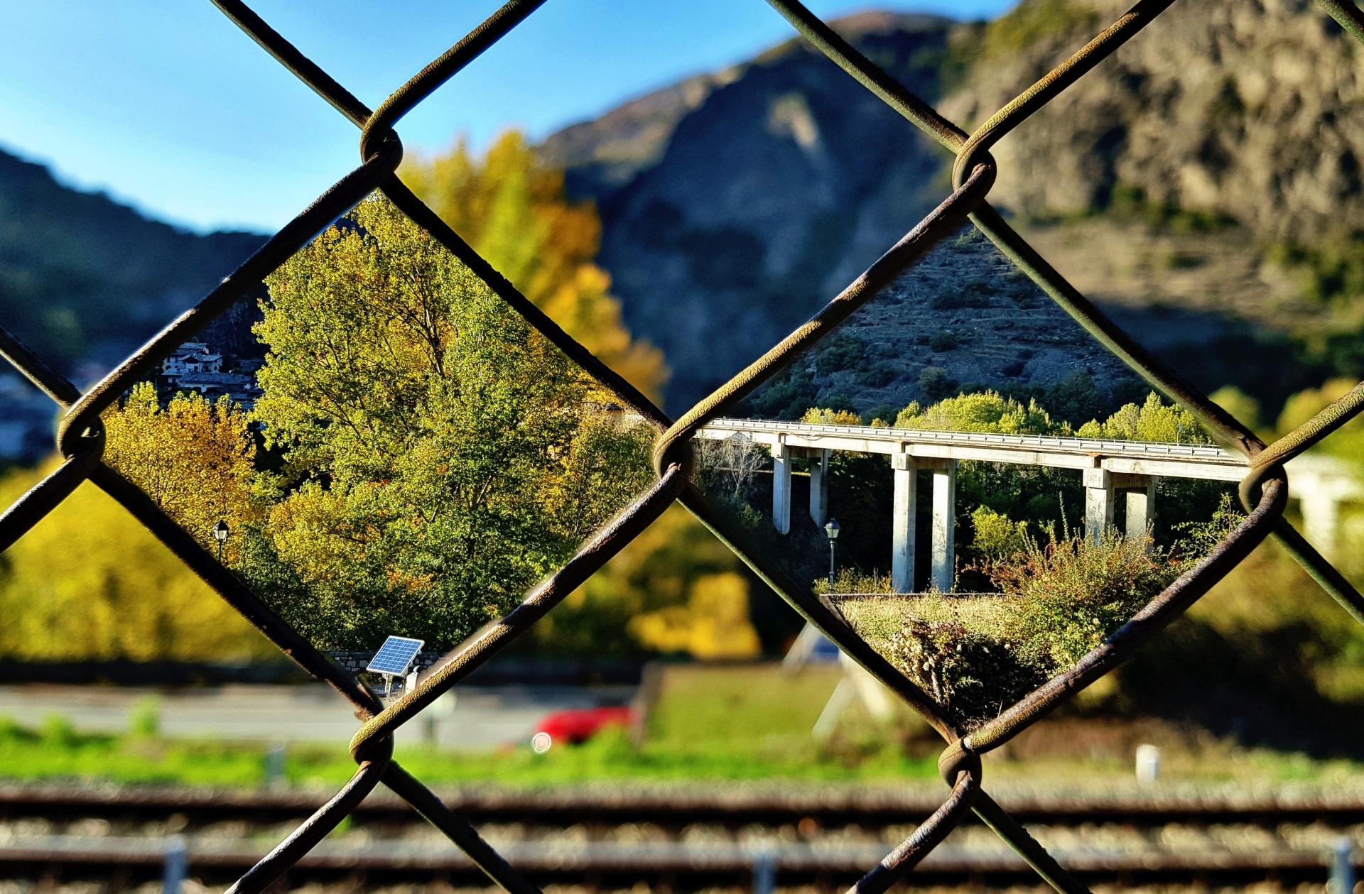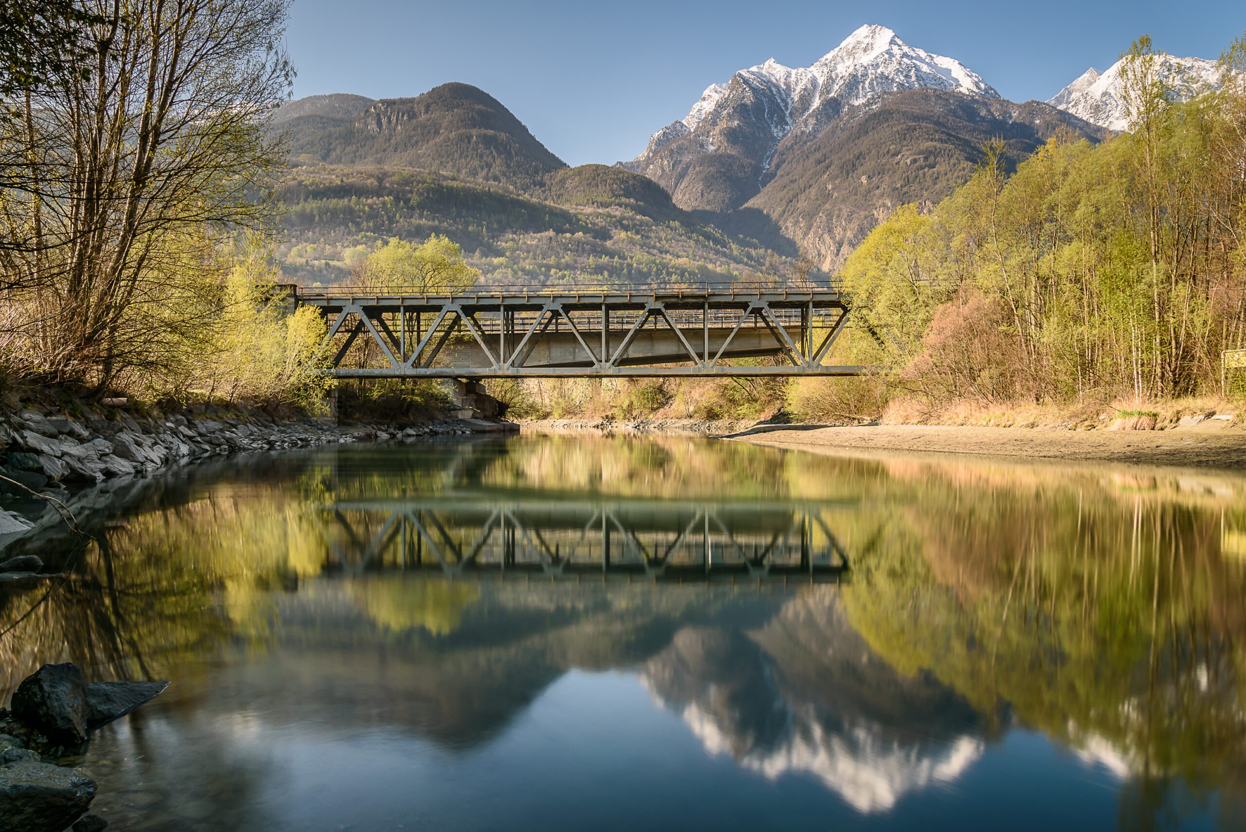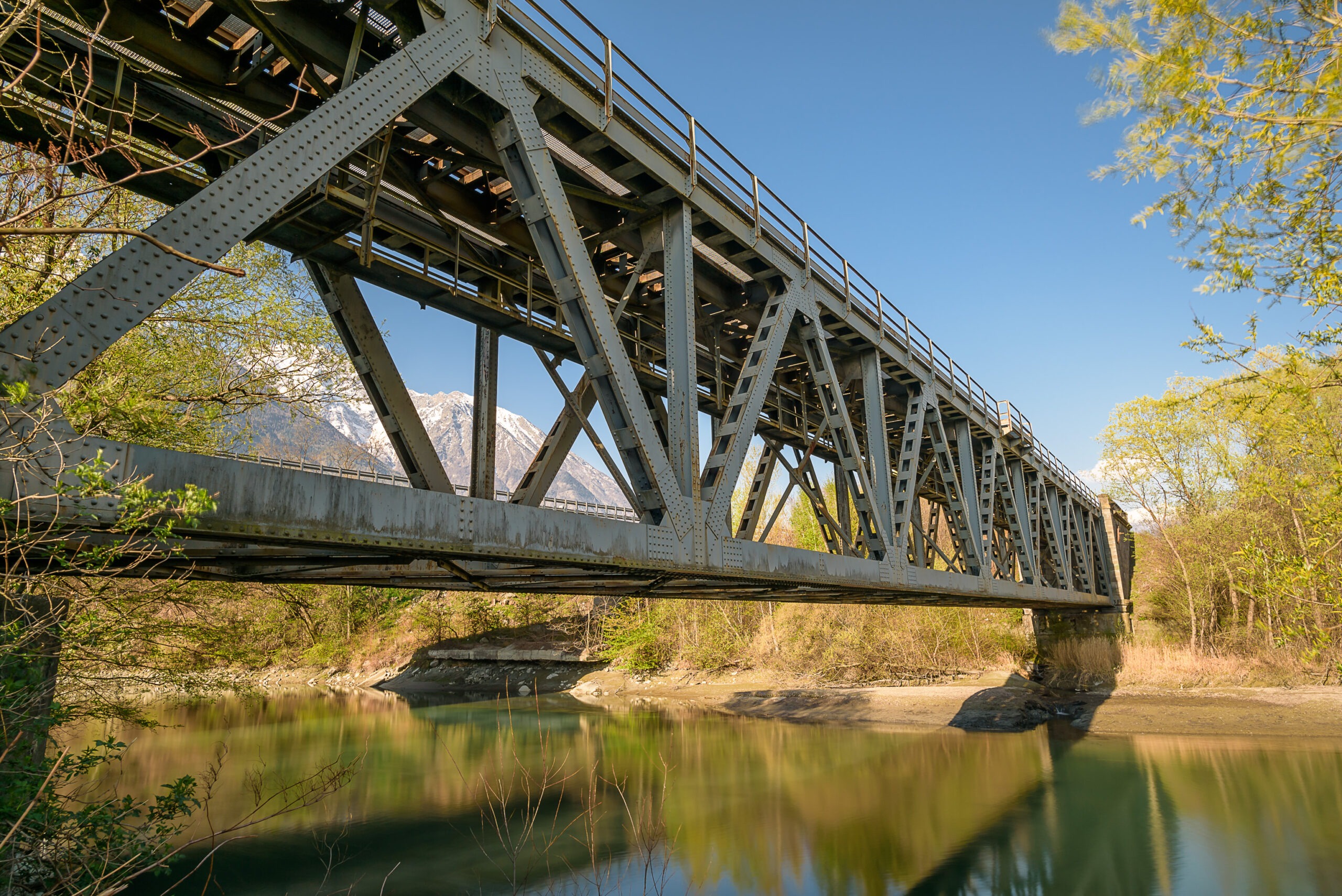 132 - Taldo Paolo - Metà Acciaio e Metà Natura... da una parte il paesaggio primaverile e dall'altra il ponte ferroviario sulla Dora tra Nus e St.Marcel.