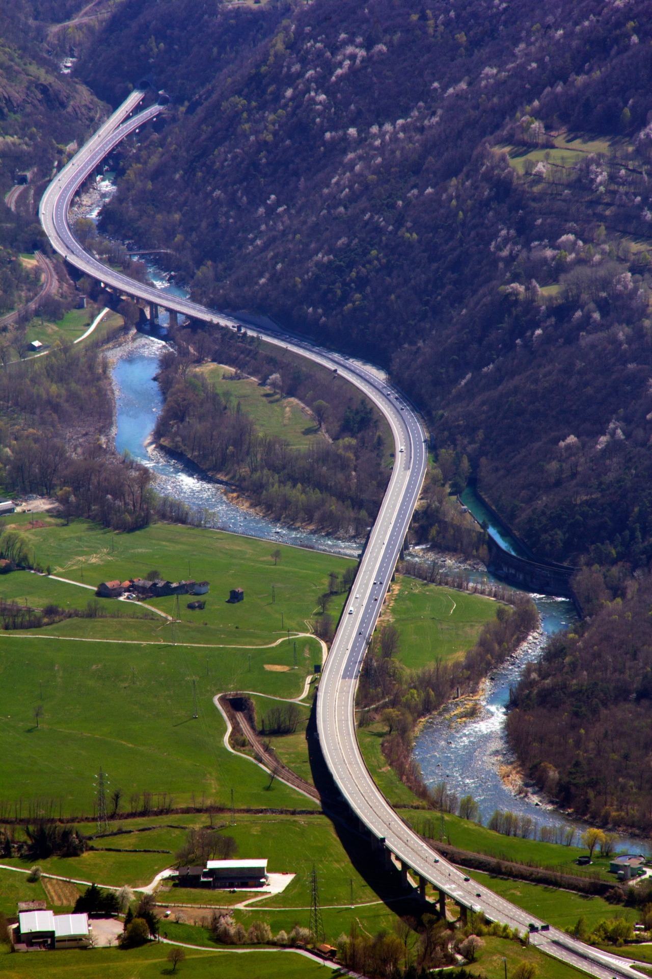 143 - Taldo Paolo - "Vie di comunicazione" In un unico scatto le due vie di comunicazione più importanti della Valle d'Aosta,Autostrada e Ferrovia.Cornice primaverile.