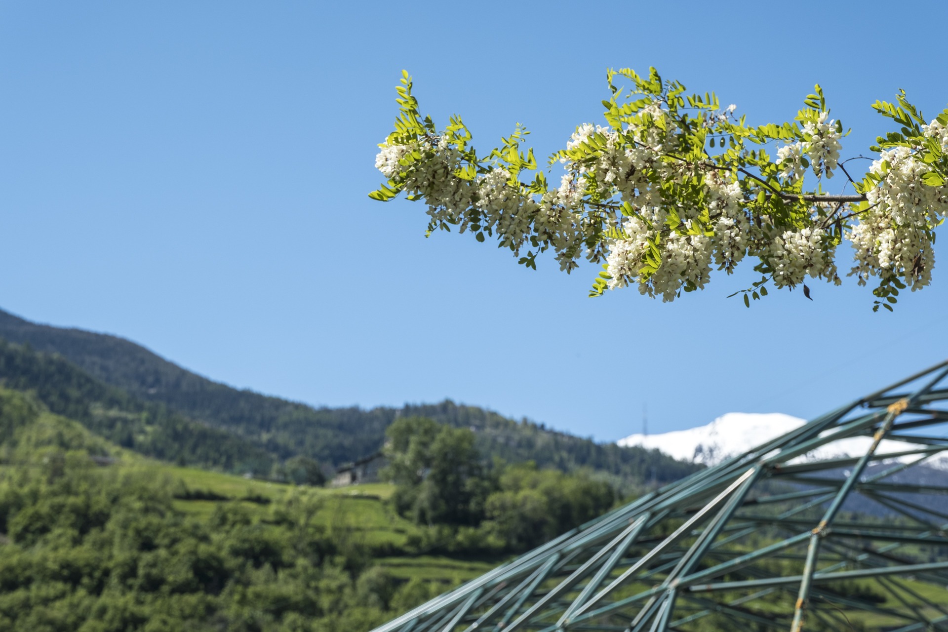 146 - Massa Micon Enzo - 45°43'09.6"N 7°11'26.0"E - i ripetitori per le comunicazioni spuntano tra gli alberi in fiore