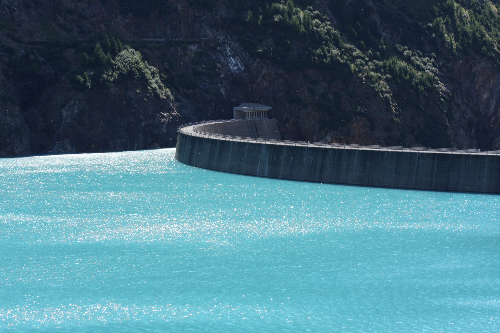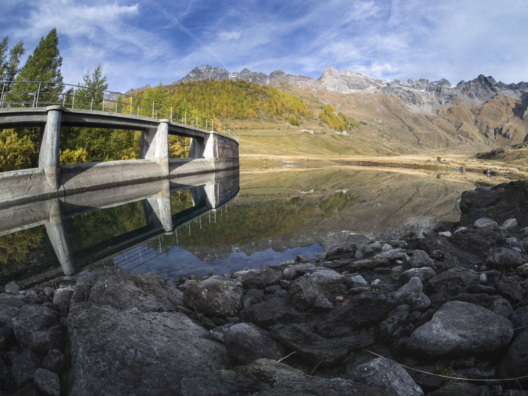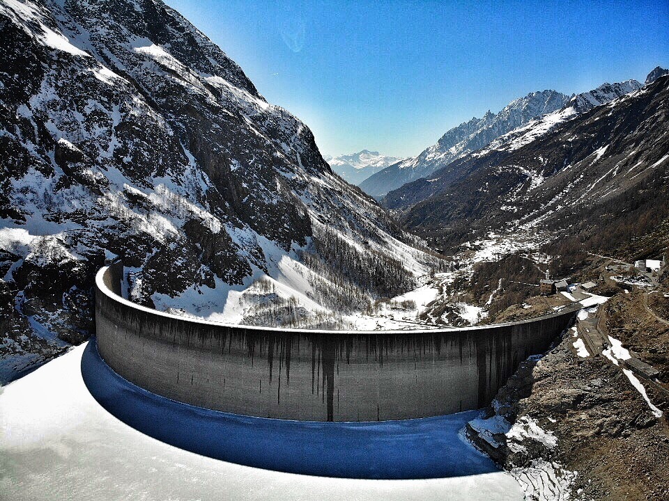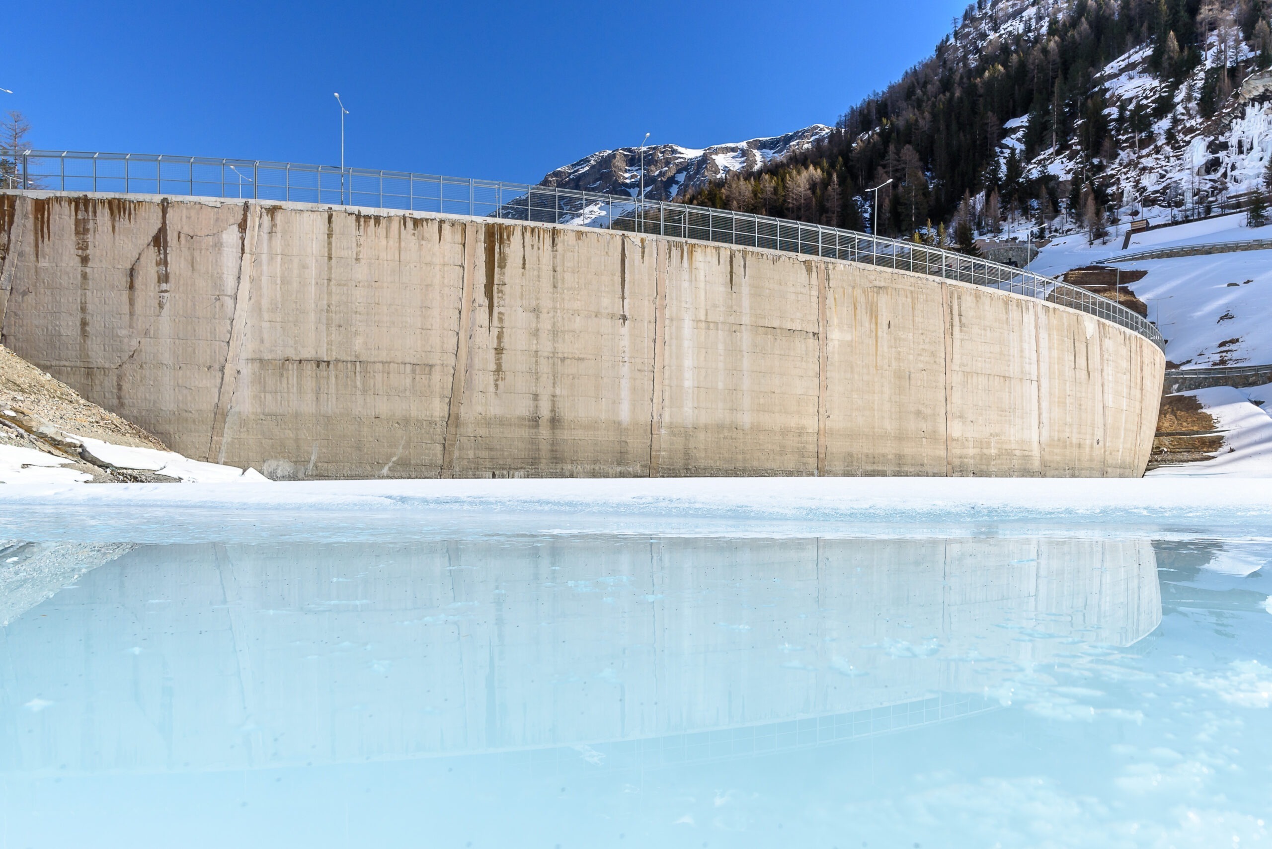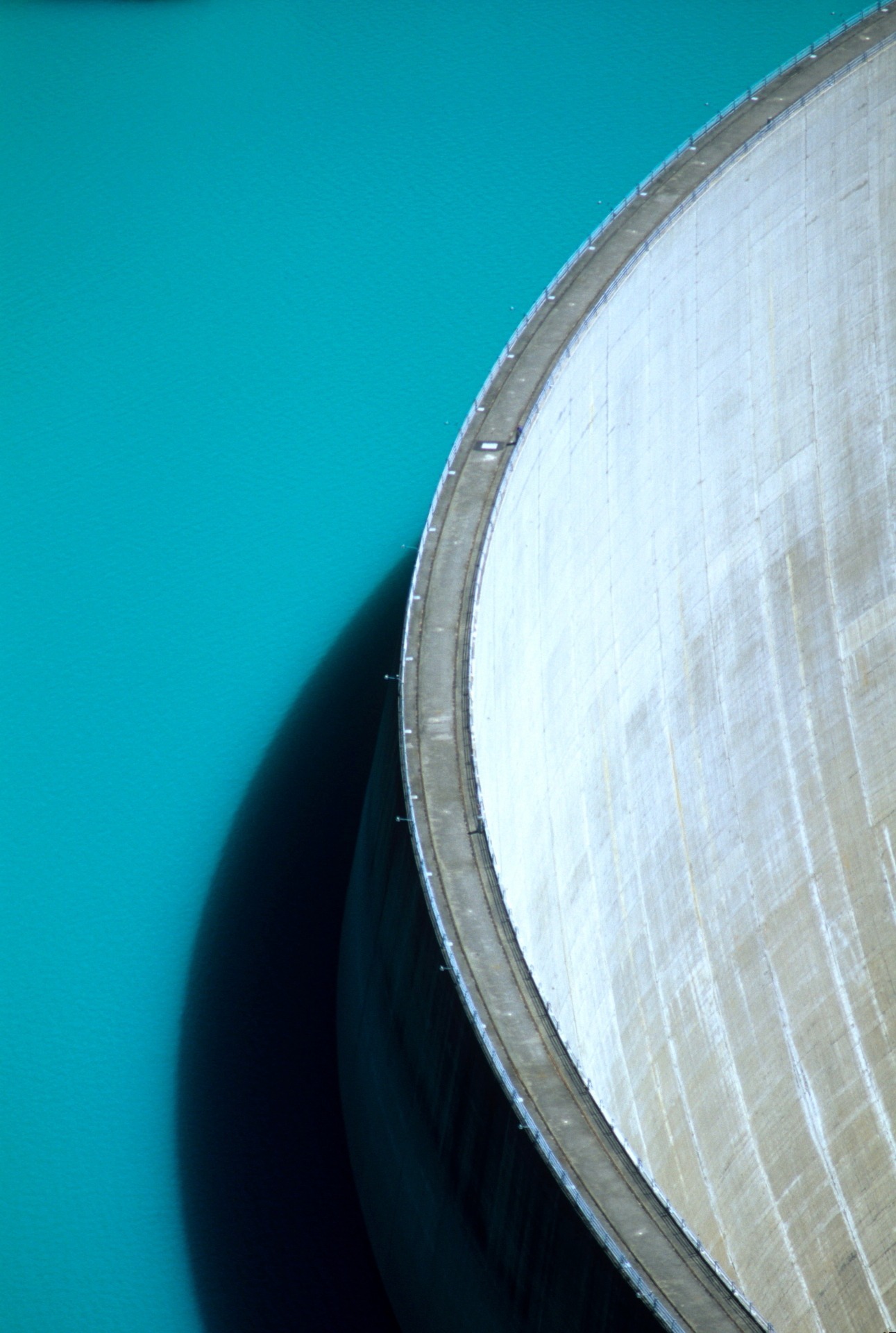 231 - Atzei Lorena - TITOLO: Eclissi di diga. DIDASCALIA: Diga di Place Moulin, Bionaz - Le ombre della montagna lasciano finalmente che il sole esalti l’imponente opera.