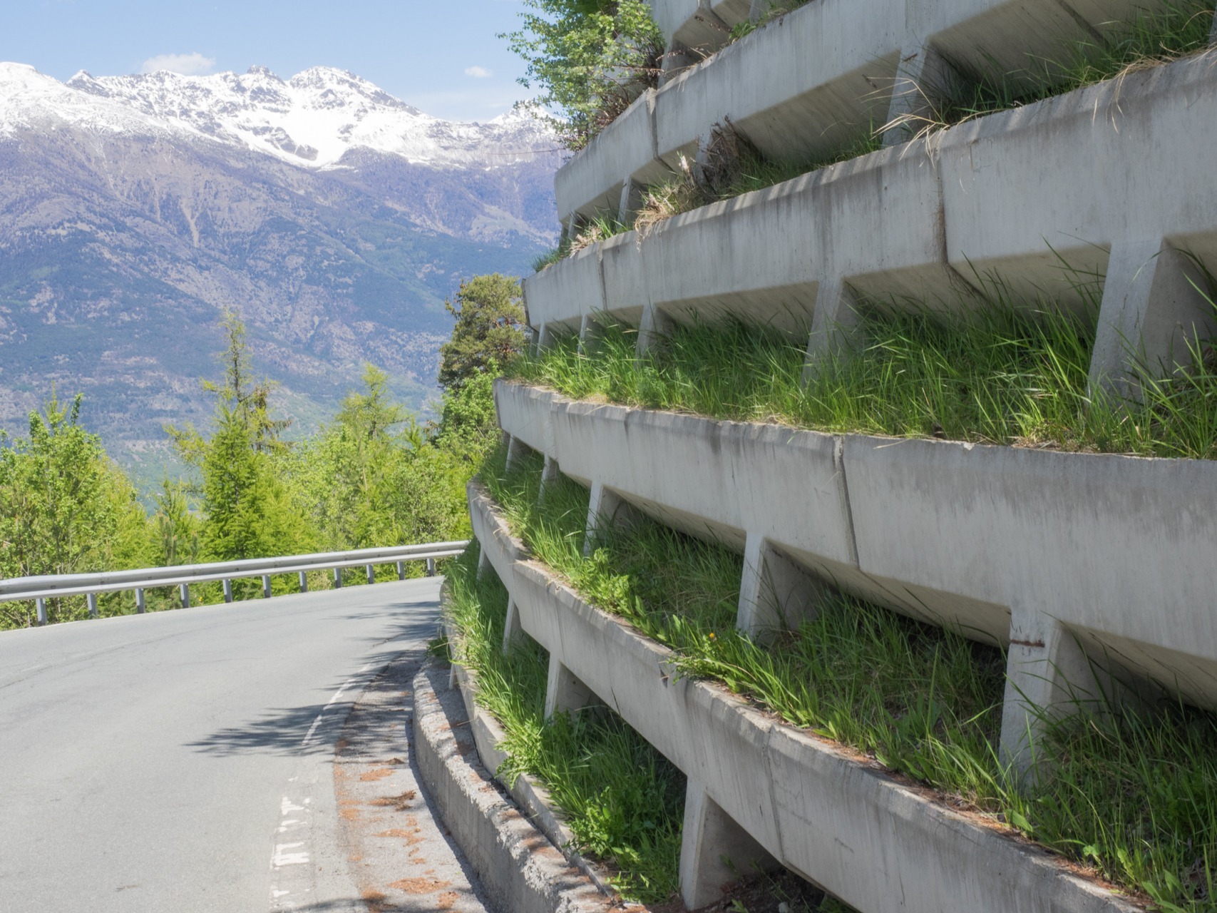 206 - Pizzi Silvia - Titolo: "Filari artificiali #1" Luogo dello scatto: Courmayeur Didascalia: I paravalanghe sembrano filari in estate, "coperti" solo dalla luce del sole, lungo il pendio.