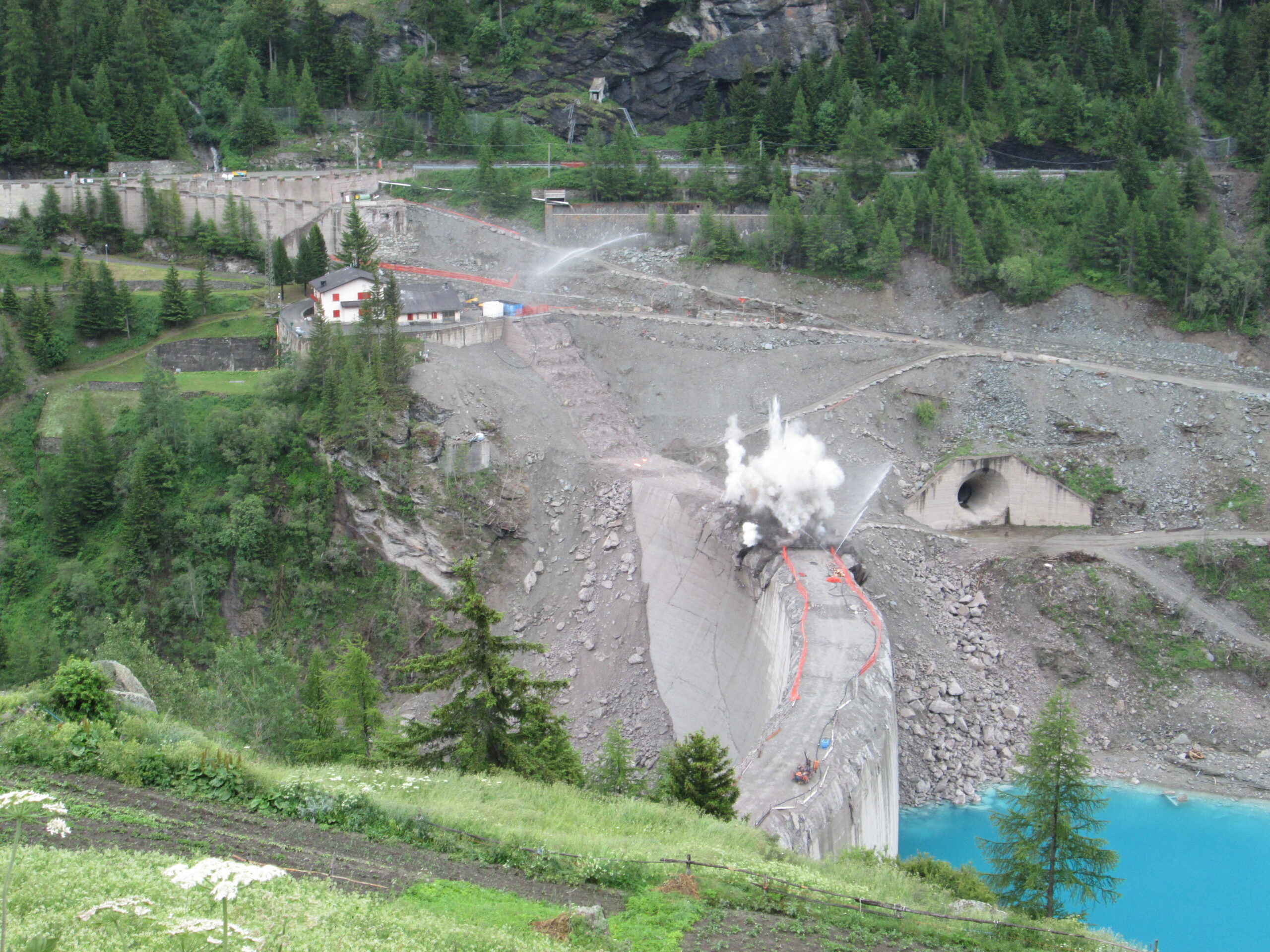 185 - enrico sergio - In estate il ghiaccio si trasforma in preziosa acqua. Sbarramento di tenuta sopra al Breuil - Valtournenche