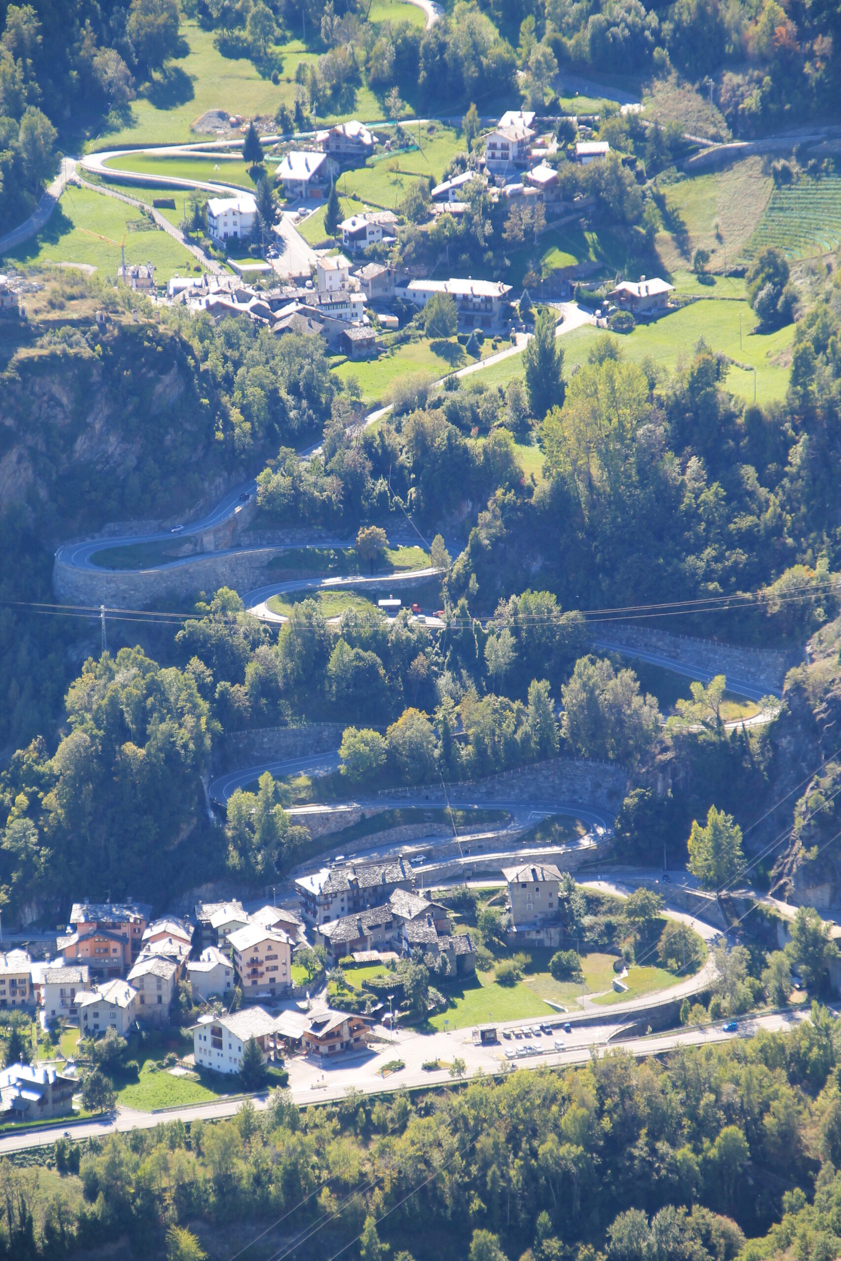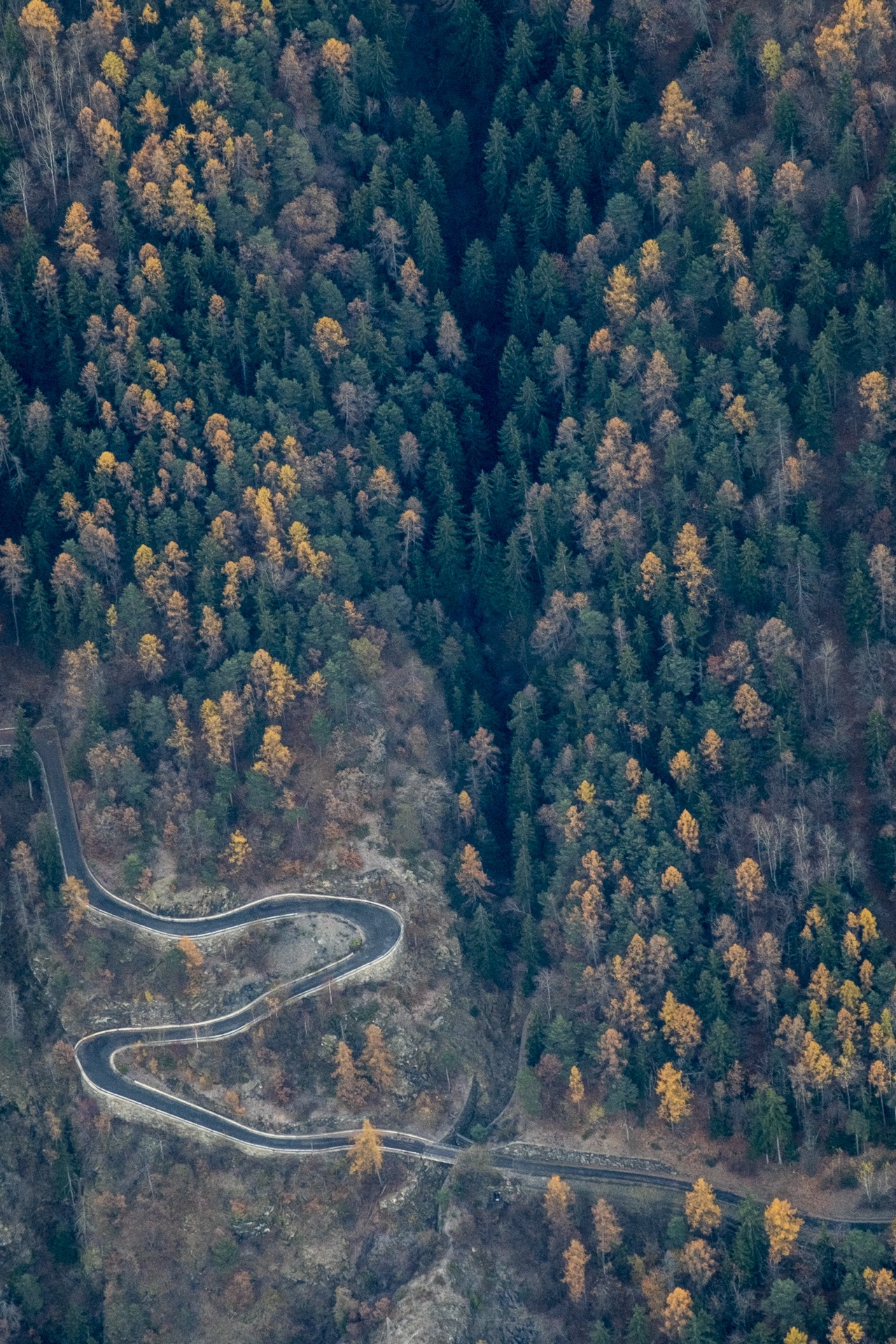 11 - Massa Micon Enzo - STRADA SU PENDIO - la strada si adatta al pendio con curve e tornanti resi quasi inspiegabili dalla prospettiva della fotografia aerea dalla mongolfiera