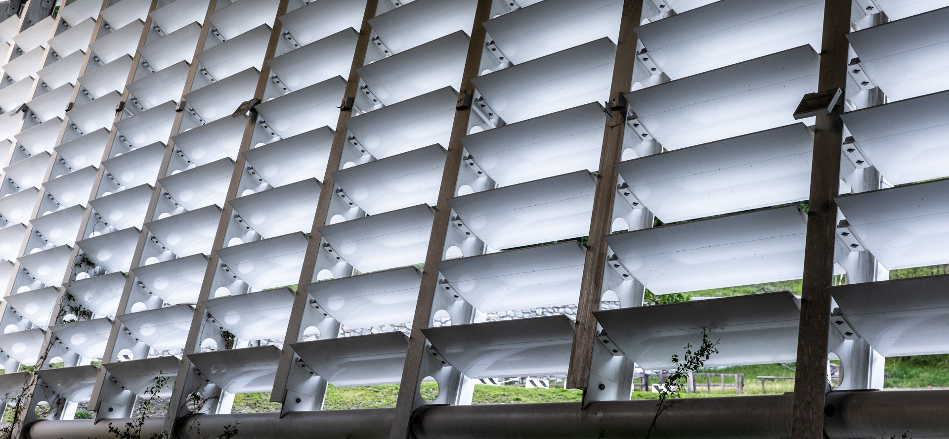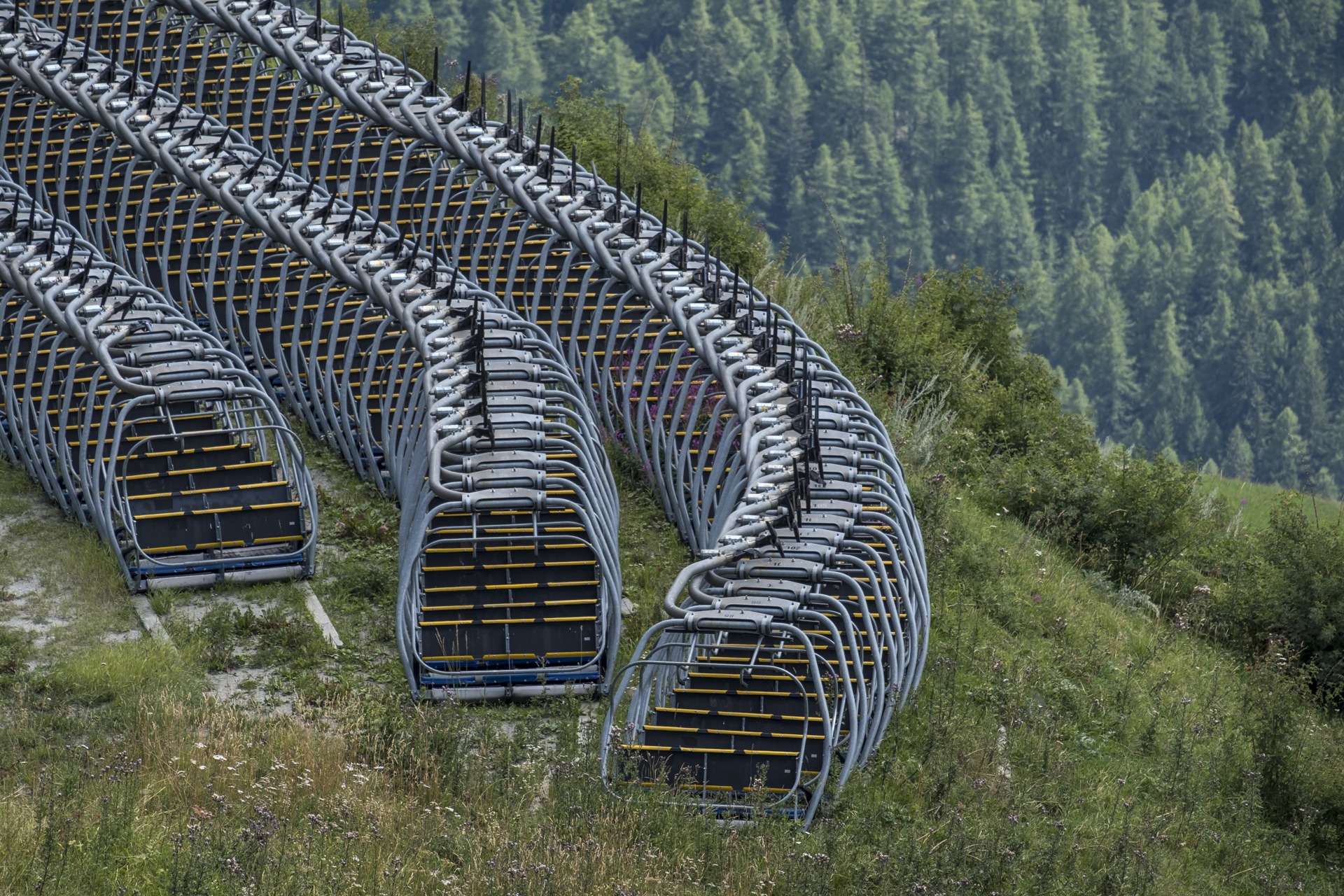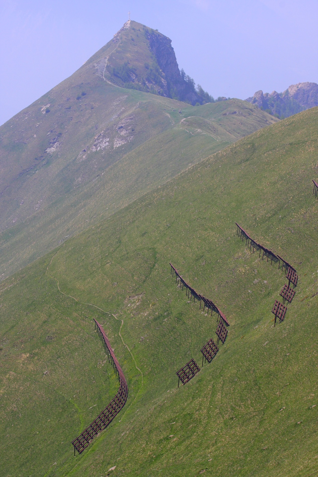 207 - Pizzi Silvia - Titolo: "Filari artificiali #2" Luogo dello scatto: Courmayeur Didascalia: I paravalanghe sembrano filari in estate, "coperti" solo dalla luce del sole, lungo il pendio.