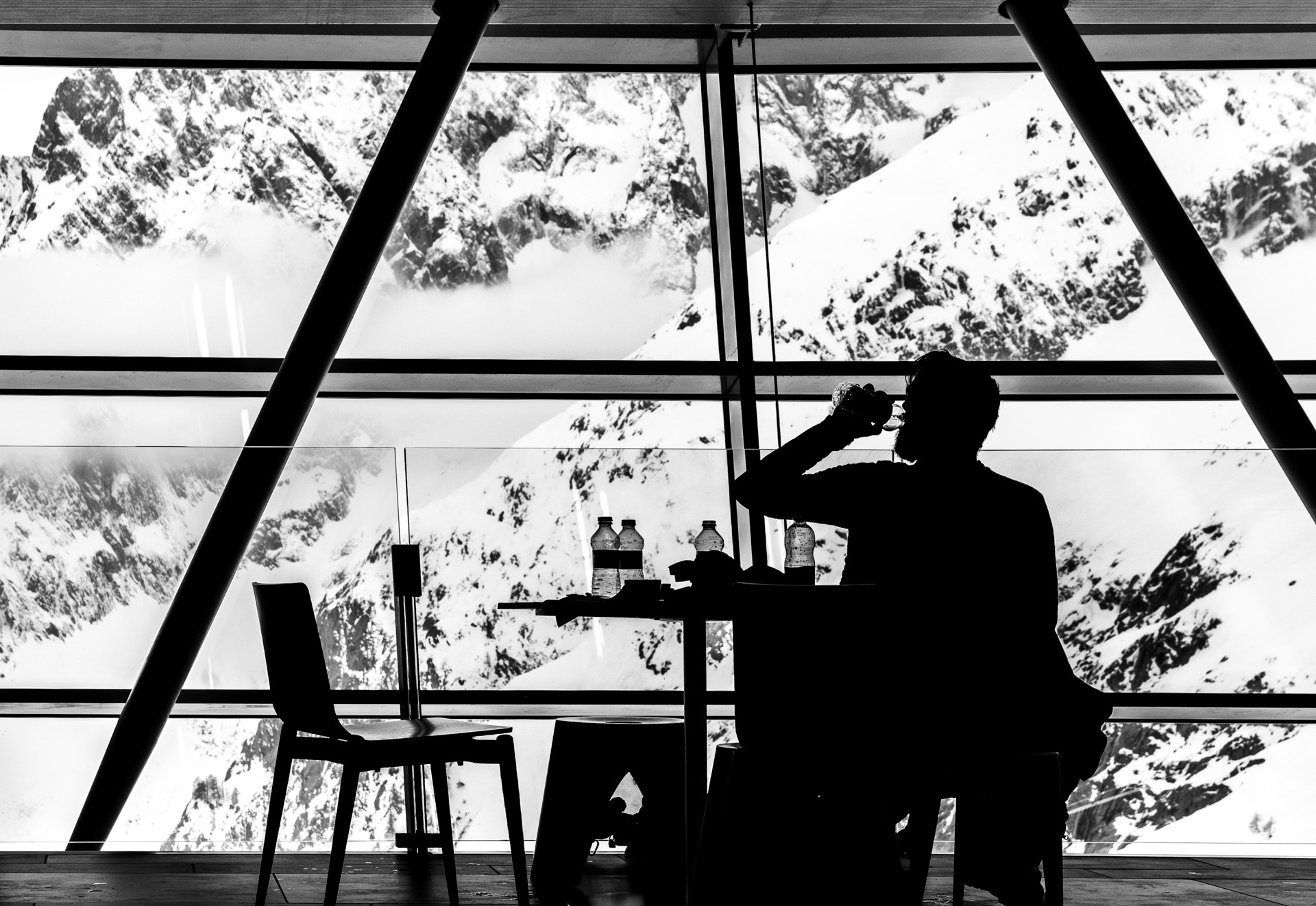 195 - Lepore Rosario - Il bar della stazione Pavillon, sullo skyway di Courmayeur, offre uno spettacolo mozzafiato sul massiccio del Monte Bianco.