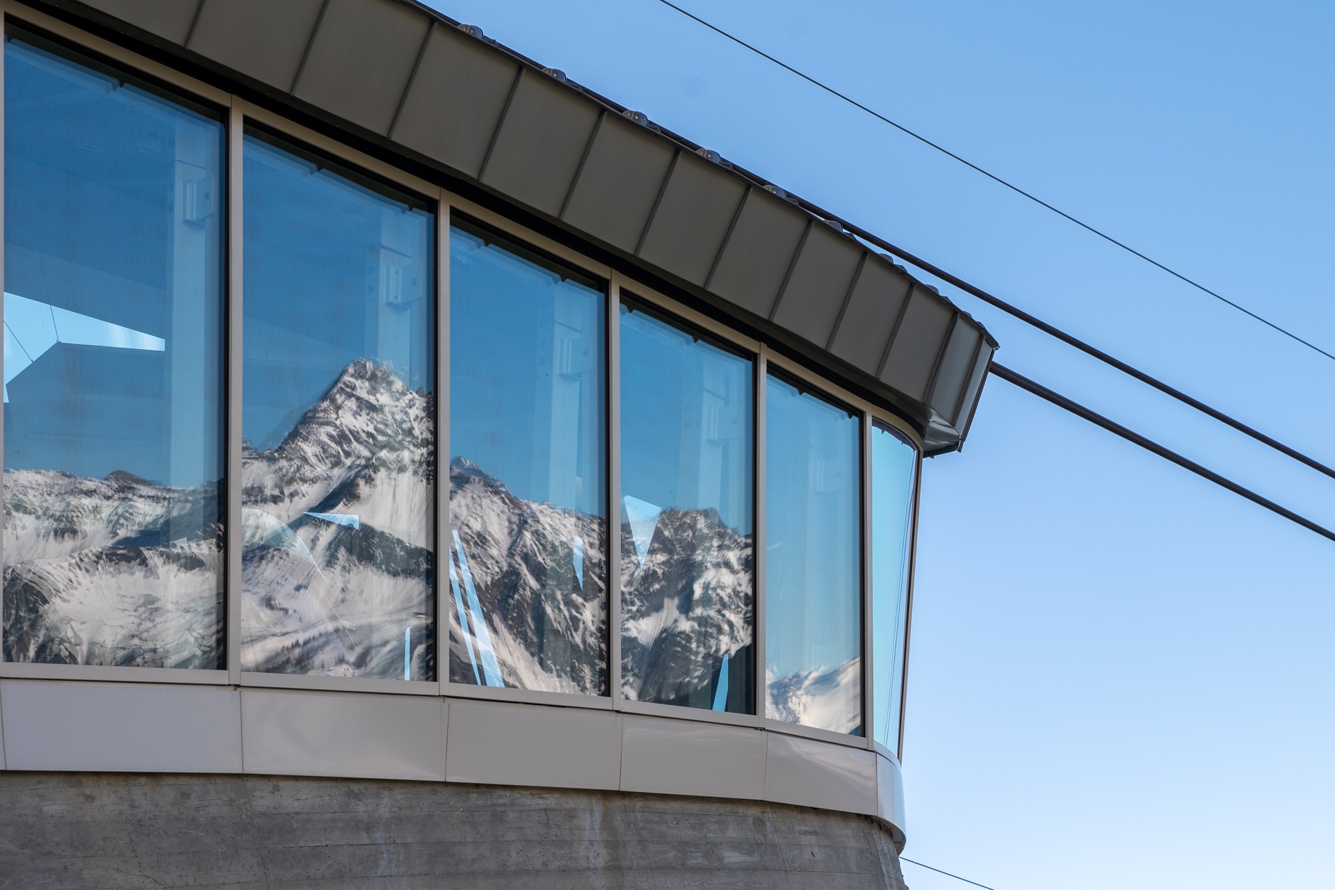 196 - Lepore Rosario - Stazione di arrivo/partenza della funivia al Pavillon. Sullo Skyway di Courmayeur offre immagini mozzafiato sulla montagna circostante. I grandi vetri permettono di ridurre l'impatto della struttura offrendo la possibilità, anche di riflesso, di ammirare