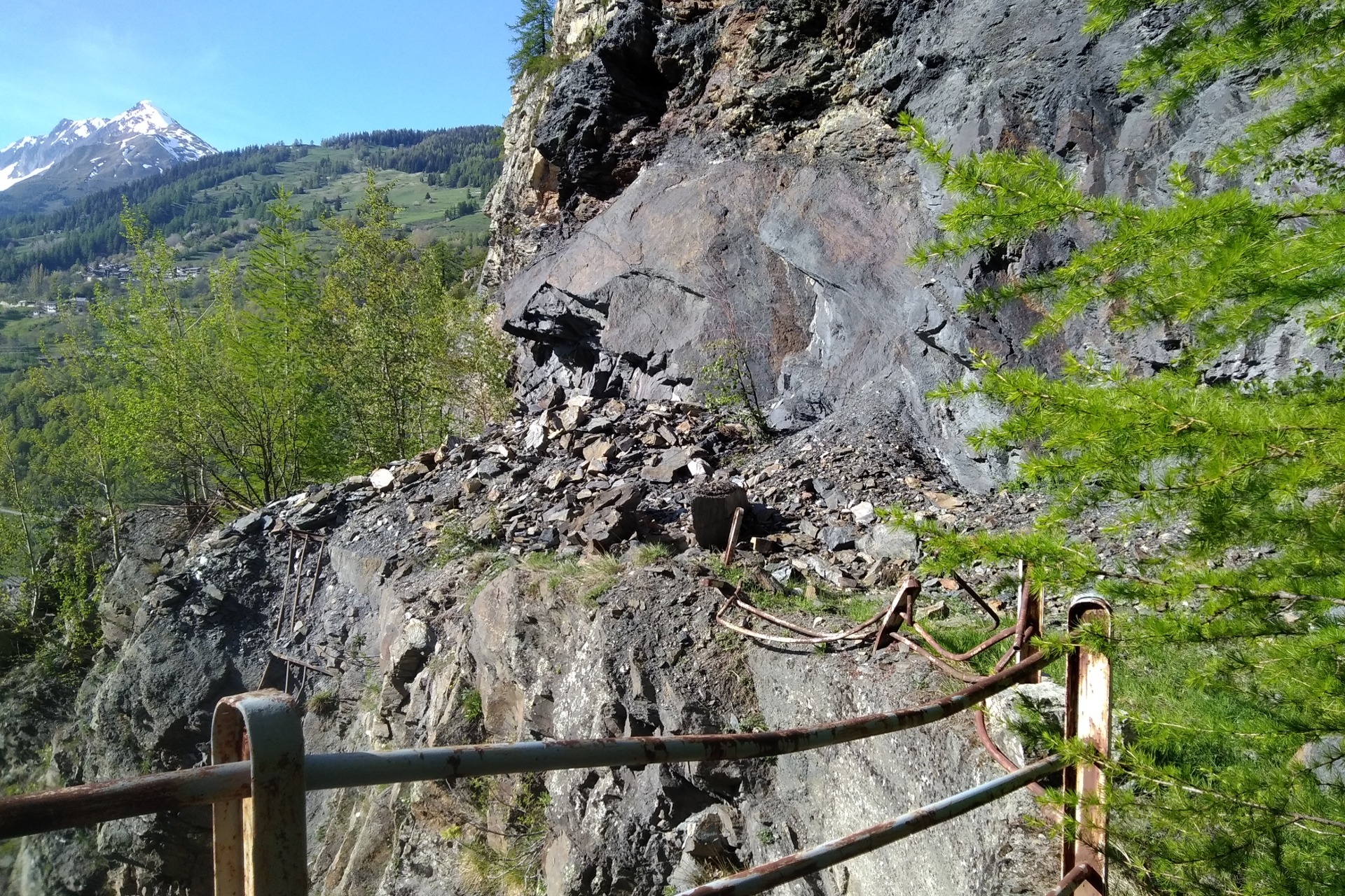 219 - Bellone Julien - Lon.: 7,08844 Lat.: 45,747883 - Ciò che rimane dell'ardita strada che collegava le frazioni di Arbetey e Charvaz (La Salle) ci ricorda che la Natura non sempre è disposta ad essere domata dall'Ingegno umano e, qualche volta, si prende una rivincita.