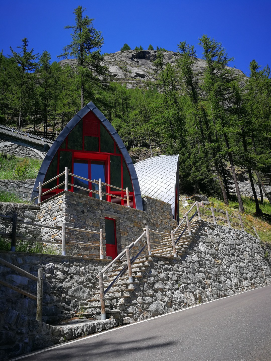 194 - Lepore Rosario - Il lungo tunnel che separa il rifugio Torino dallo Skyway di courmayeur è stao completamente intrgrato nel territorio montano con un impatto sull'ambiente veramente minimo
