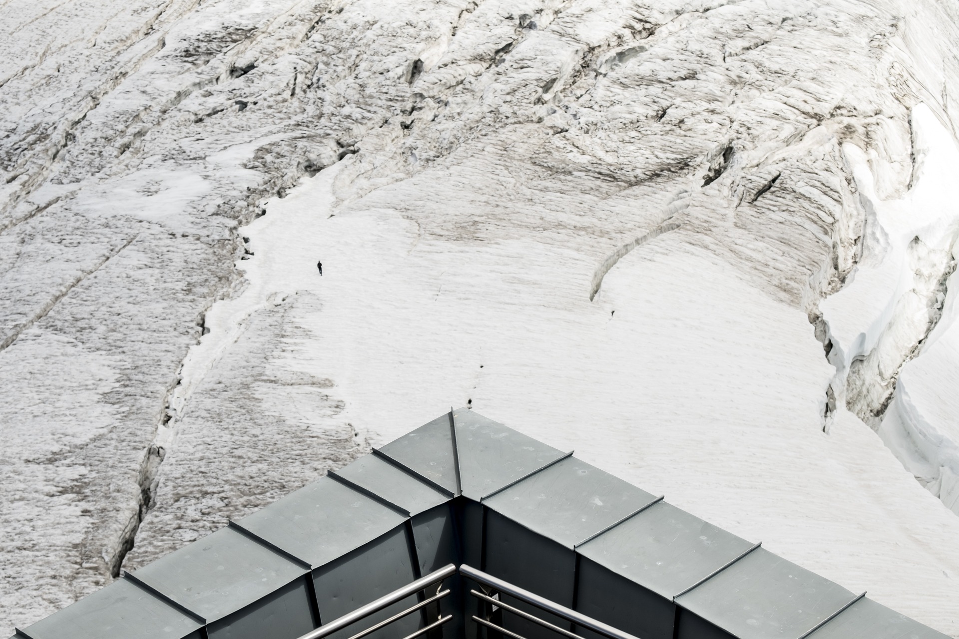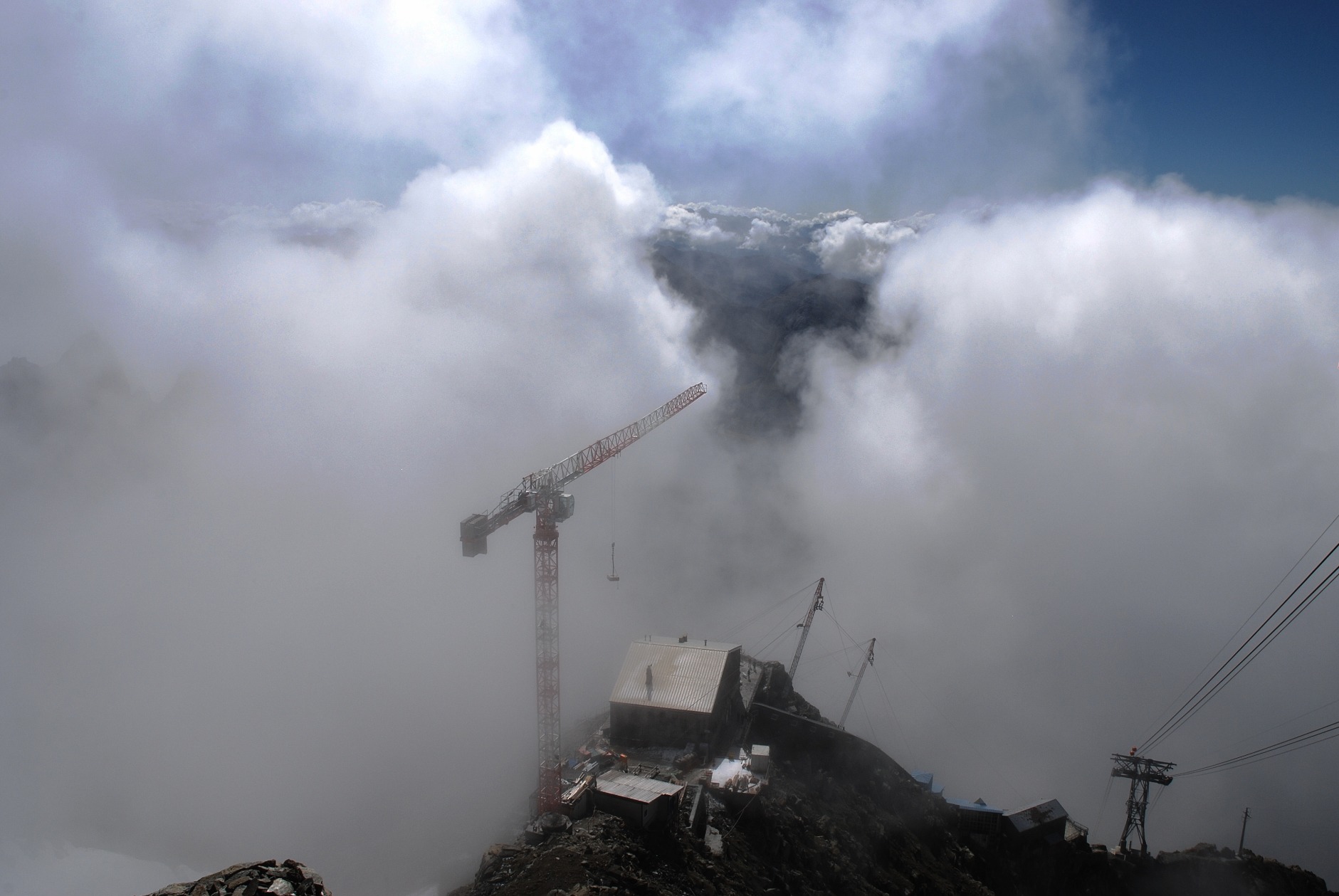 232 - Balma Luca - TITOLO: Terra in vista! - DIDASCALIA: Punta Helbronner: vista sui lavori di ammodernamento del rifugio Torino - come dalla prua di una nave…verso l’orizzonte.