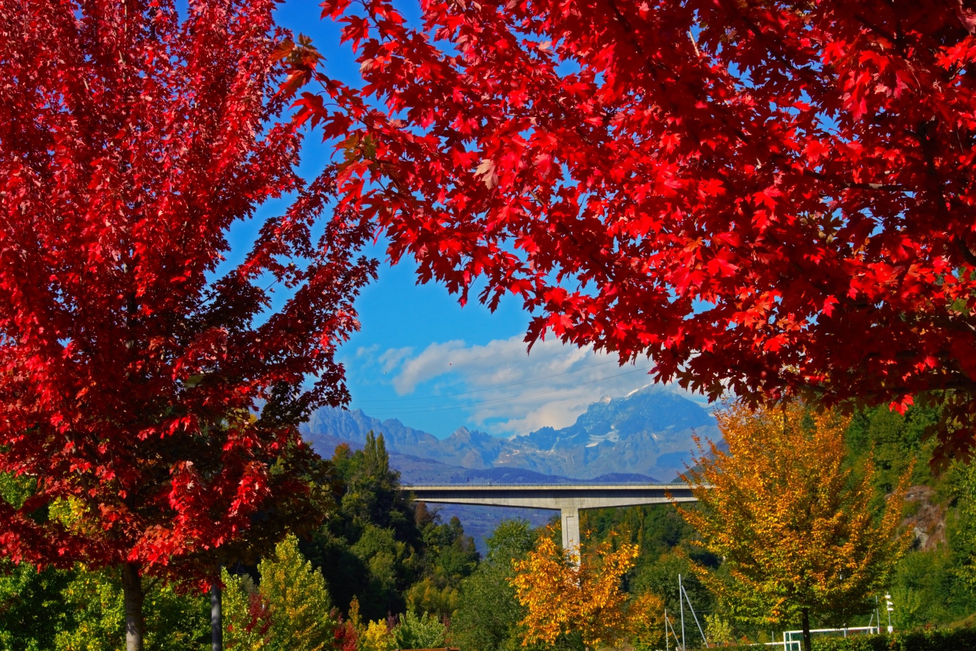 137 - Pession Adriana - Rosso, giallo e il verde dell'acqua e degli alberi colorano la centrale di Vert