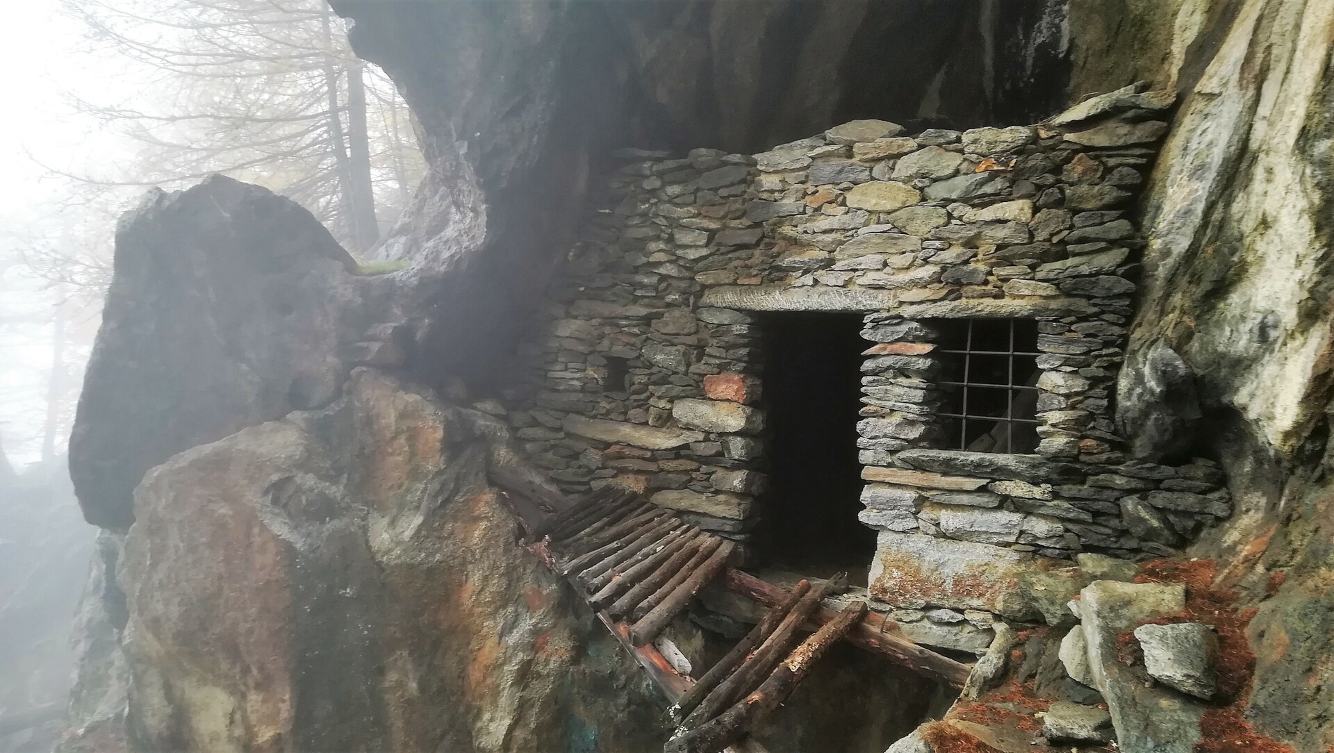 44 - Pieiller Ubaldo - Il vecchio manufatto in pietra sembra essere sempre esistito, a stento lo si distingue dall’ambiente naturale. GPS N45.89597, E7.61801