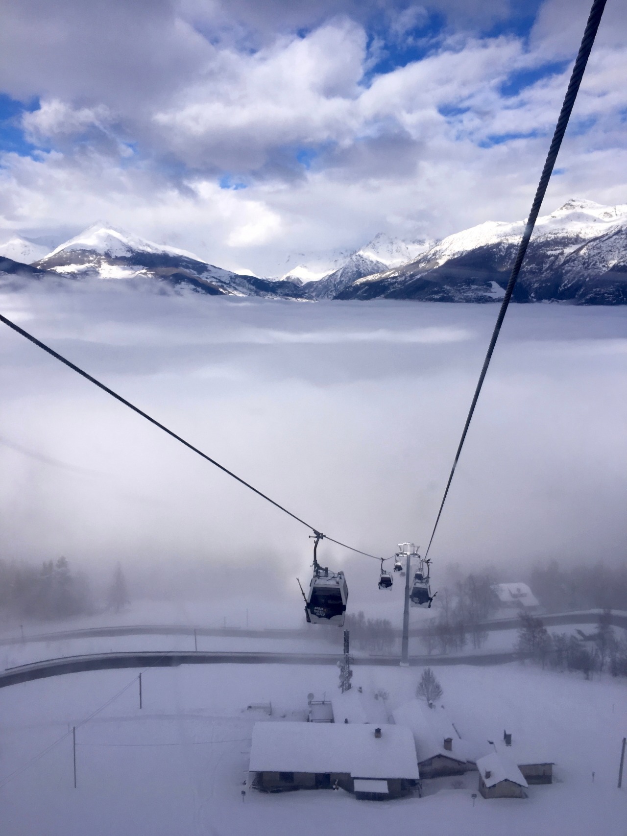 209 - Pizzi Silvia - Titolo: "Funi che uniscono due mondi" Luogo dello scatto: Courmayeur Didascalia: La discesa permette all'essere umano di ammirare due mondi, due paesaggi, due orizzonti e di tornare infine alla prospettiva originale.